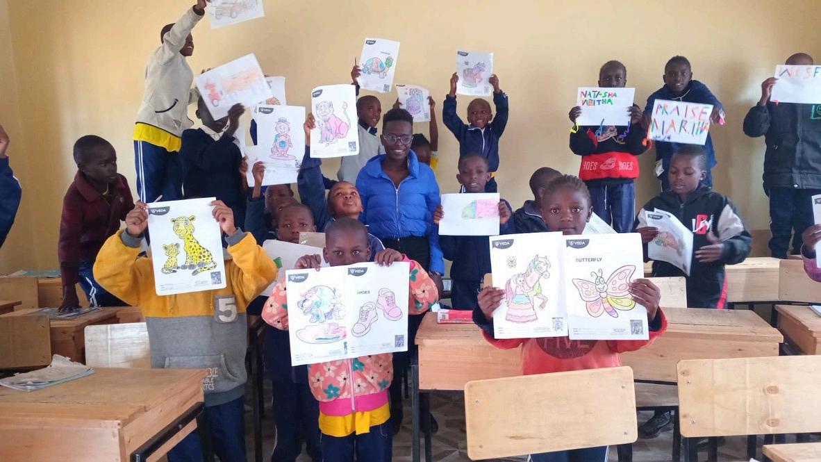 Children showing their art at the Christian school that BVM built and supports monthly.