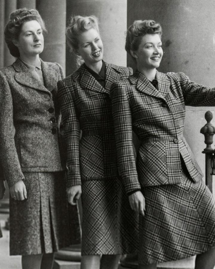 Following the war, women were hesitant to start wearing large amounts of fabric, being used to the rationing mindset. Despite this hesitation, gradually fuller, pleated skirts came back into fashion and set the standard for a new feminine look post World War II.