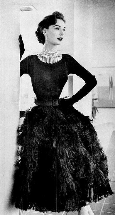 The 1950s saw more evidence of a desire on the part of many women to move back towards the pre-war elegance of fashion Christian Dior’s New Look embraced this change and return to normalcy for many Americans. Thus came the more feminine dresses with full skirts and narrower waists until the mid 1950s, when forms began to slim as the teenage silhouette became more fashionable During this time, there also emerged more feelings of individuality than had been seen before. As different countries had developed their fashion separately, several different styles were now considered “in”, whereas before, the fashionable look was the same worldwide. Narrow skirts and wide skirts could be held as the mode simultaneously, making room for individual tastes.