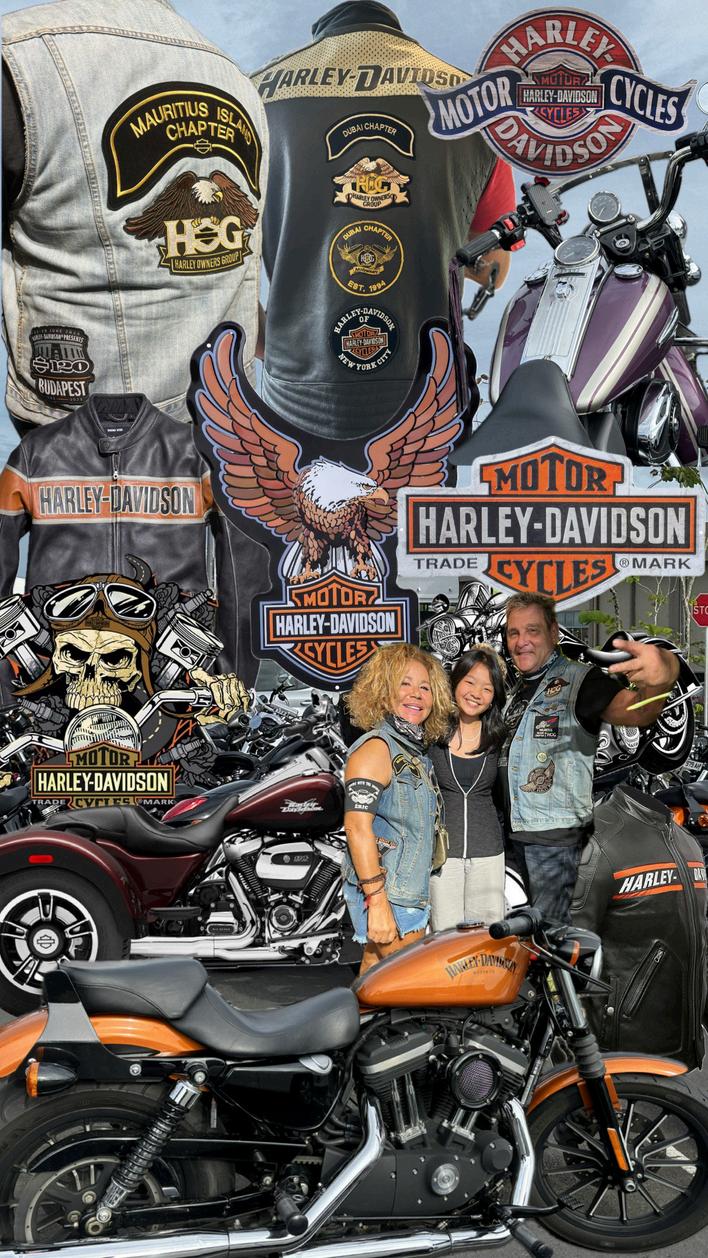 This artwork is based on the history of Harley-Davidson motorcycles and the people who share the same love of the brand. Harley-Davidson has been popular since the 1920s when it became the biggest producer in the world, with their bikes sold in 67 countries. Till this day Harley Davidson is still seen and well known. Since it was such a big hit it was not forgotten. In 2022, Harley-Davidson made a triumphant return with a stellar lineup of motorcycles. The company has been around for over a hundred years and has a rich history of making motorcycles with incredible performance, power, and style. It is a brand that evokes passion in riders around the world. In this artwork you can see me with two of the bikers who have a big love and passion for this brand. The woman got into this passion and love because of her husband who is standing next to me, who introduced her to it. As you can see in the artwork they also have their own jackets with HarleyDavidson on it to represent their group and express their love for it. Some of the bikes in the artwork are the bikes of some of the people I met when meeting this very kind couple that is part of the Harley-Davidson group. I find this trend never old and never ending. Long live Harley-Davidson!