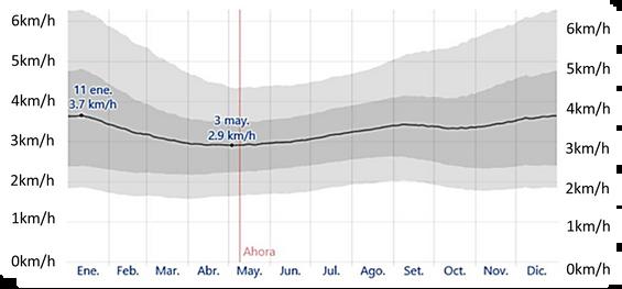 viento por hora no varía considerablemente durante el año y permanece en un margen de más o menos 0.4 kilómetros por hora de 3.3 kilómetros por hora. En el distrito de la Banda de Shilcayo, la dirección del viento predominante es en el sentido Sur-Este durante todo el año, con una velocidad de 2.5m/s de promedio.