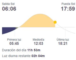 La salida del sol más tardía es 40 minutos más tarde a las 6.18 (17 de julio)