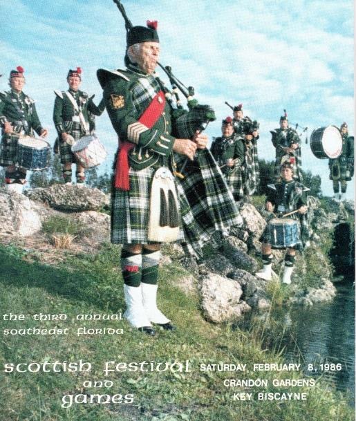 For many years the City of Miami supported an International Festival where various ethnic groups demonstrated their music, dance, and crafts, and offered a sampling of their food. In the late '70s and early 80's, more and more groups were starting their own festivals, not participating in the International Festival. The Scots seeing this were keen to start a Miami Scottish Games.