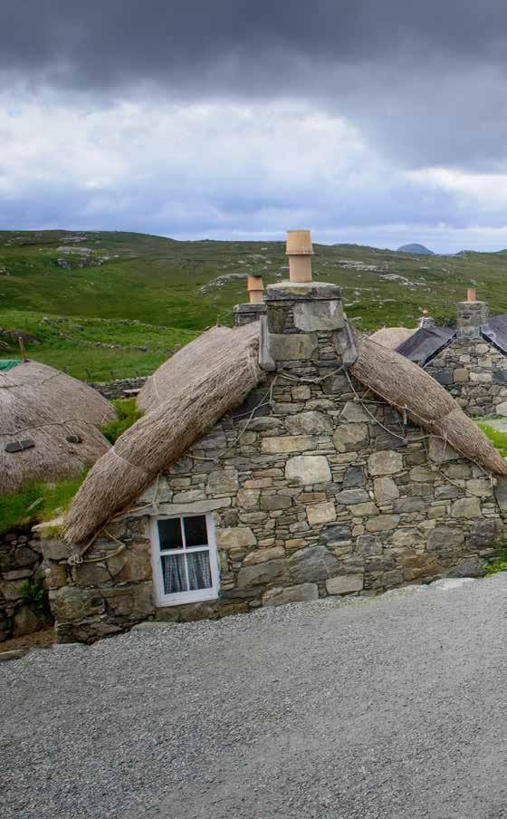 Black house community on Isle of Lewis. Built during the Iron Age. Now used as holiday cottages.