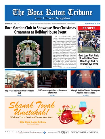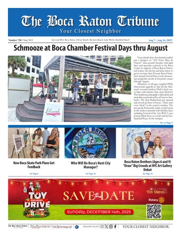 YOUR CLOSEST NEIGHBOR. FOLLOW US ON The Boca Raton Tribune Your Closest Neighbor East /West Boca Raton, Highland Beach, Delray Beach, Deerfield Beach, FL July 14 - July 20, 2023 Number 623 • Year XIII