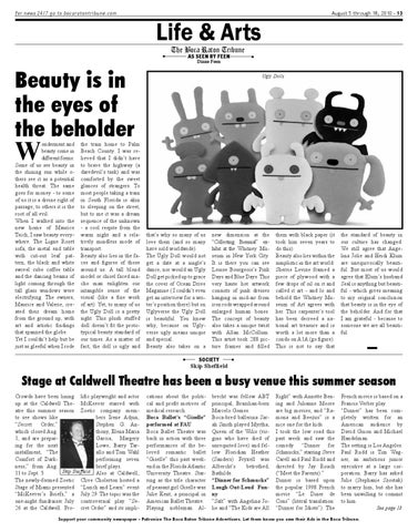 Stage at Caldwell Theatre has been a busy venue this summer season Crowds have been lining lific playwright and actor up at the Caldwell The- McKeever starred with atre this summer season Zoetic company memto see shows like bers Irene Adjun, “Secret Order,” Stephen G. Anwhich closed Aug. thony, Elena Maria 1, and are preparGarcia, Margery ing for the next Lowe, Barry Tarinstallment, “The allo and Tom Wahl Comfort of Darkperforming seven ness,” from Aug. brief plays. Skip Sheffield 11 to Sept. 5. Also at Caldwell, The newly-formed Zoetic Clive Cholerton hosted a Stage of Miami presented “Lunch and Learn” event “McKeever’s Briefs,” a July 29. The topic was the one-night fundraiser July controversial play “Se26 at the Caldwell. Pro- cret Order” and its impli-