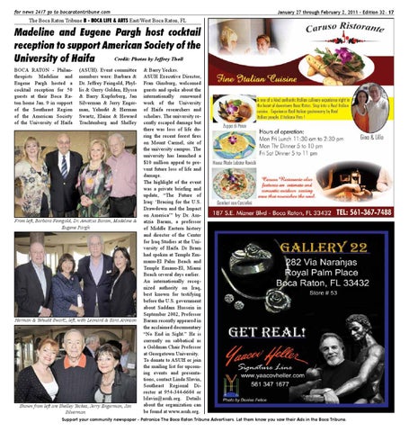Madeline and Eugene Pargh host cocktail reception to support American Society of the Credit: Photos by Jeffrey Tholl University of Haifa BOCA RATON - Philanthropists Madeline and Eugene Pargh hosted a cocktail reception for 50 guests at their Boca Raton home Jan. 9 in support of the Southeast Region of the American Society of the University of Haifa