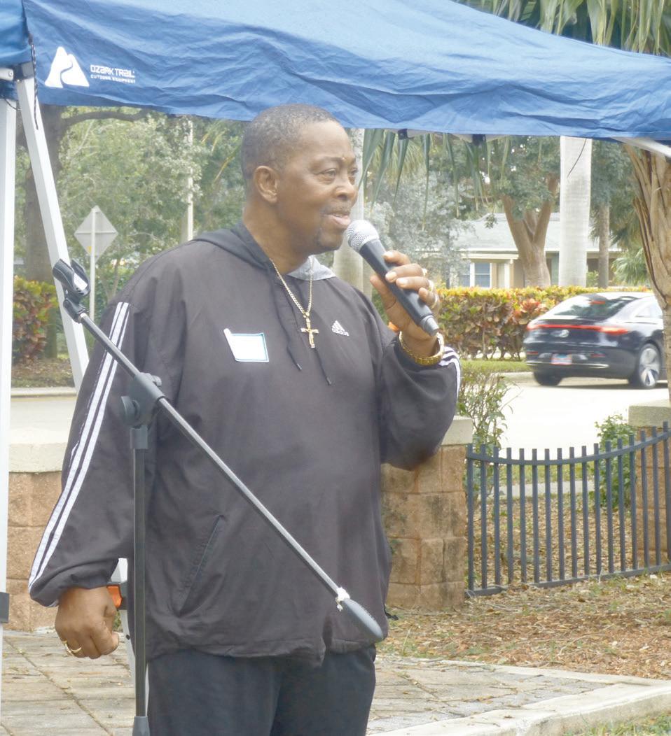 Gingerbread is the conservatory’s largest fundraiser each year, hosted by the Friends of the Conservatory—a dedicated group of volunteers and donors who champion Lynn’s high-quality music education through fundraising initiatives and community outreach. “Thank you to each and ever y person who committed to a sponsorship, bought a ticket or volunteered their time to make this year’s event possible,” said Lisa Miller, director of annual programs at Lynn. “Ever y dollar we raise provides the resources we need to train world-class musicians and keep the arts alive right here in our community.” Charles Conklin addresses the crowd at the third annual Unity Day at Hughes Park in Boca Raton, sponsored by Changing Lives. (Photo by Dale King)