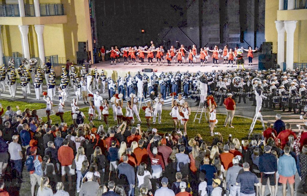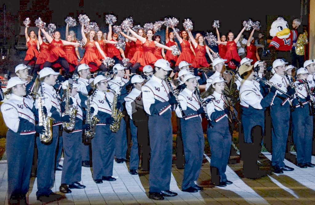 Among the list of tunes attendees got to hear were “U of Toledo,” the fi ght song the Rockets’ marching band performs at every home sporting event. Liberty’s fi ght song, “Fan the Flames,” also reverberated when the Flames’ marching band took the stage.”