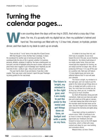 I have been writing my publisher’s column since 1999. It continues to be an honor to share my thoughts. I always appreciate your feedback and look forward to many more on the CCR digital locomotive, which is filled with news, content and ideas for your new building and renovation efforts.