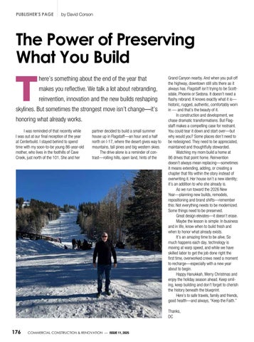 In construction and development, we chase dramatic transformations. But Flagstaff makes a compelling case for restraint. You could tear it down and start over—but why would you? Some places don’t need to be redesigned. They need to be appreciated, maintained and thoughtfully stewarded.