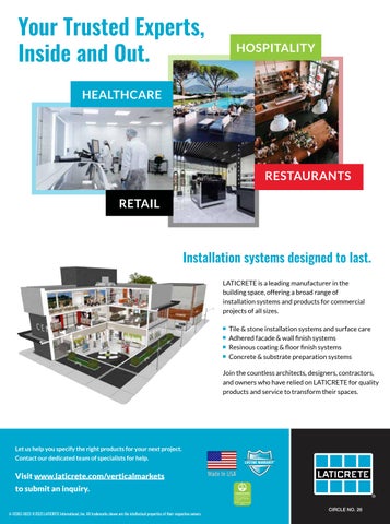 CIRCLE NO. 6 Commercial Construction & Renovation is published monthly by F&J Publications, LLC. The opinions expressed by authors and contributors to Commercial Construction & Renovation are not necessarily those of the editors or publisher. Commercial Construction & Renovation is not responsible for unsolicited manuscripts, photographs or artwork. Articles/content appearing in Commercial Construction & Renovation cannot be reproduced in any way without the specific permission of the publisher or editor.