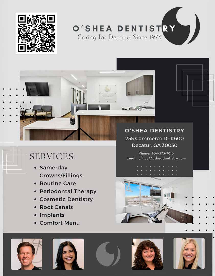 Decatur Living is published quarterly by Natalie Gregory. Distribution is a minimum of 14,000 with up to 11,000 being mailed to households in Decatur, Druid Hills, Avondale Estates, Candler Park, Lake Claire and Oak Grove. Contents of this magazine may not be reproduced without written permission from the publisher. Advertisers and advertising agencies assume liability for content of all advertisements. The publisher does not necessarily share the editorial opinions expressed in Decatur Living Magazine. Personal decisions regarding health, finance, and other matters should be made after consultation with the reader’s professional advisors.