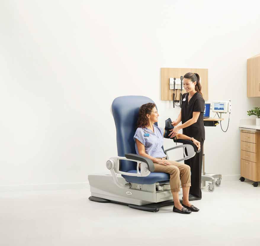 01 Low-height exam chair helps patients keep their back supported and feet flat on the floor