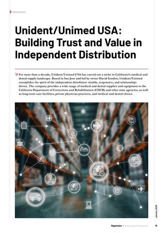 dental supply landscape. Based in San Jose and led by owner David Gordon, Unident/Unimed exemplifies the spirit of the independent distributor: nimble, responsive, and relationshipdriven. The company provides a wide range of medical and dental supplies and equipment to the California Department of Corrections and Rehabilitation (CDCR) and other state agencies, as well as long-term care facilities, private physician practices, and medical and dental clinics.