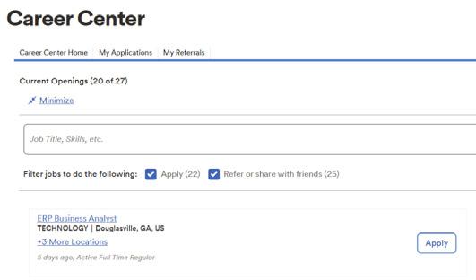 You can view all of UCX’s open positions on the ADP website. To do so on the home page, go to Myself > Career Center. This will bring you to a list of open positions and you can click on them to see the location and to view details about the position.