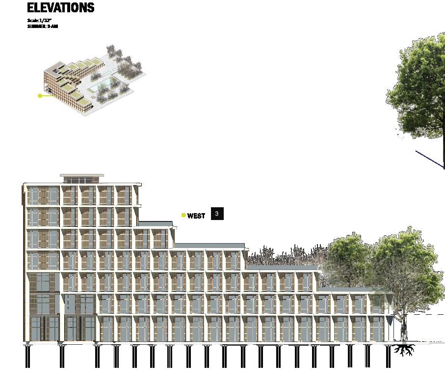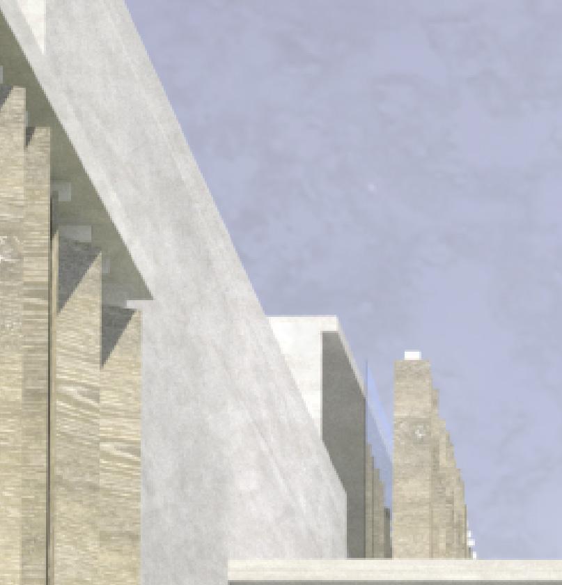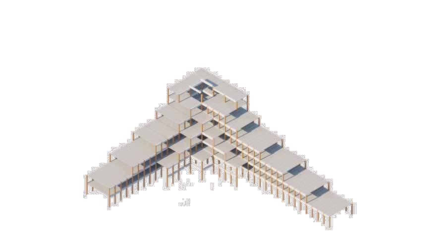 Designing in a contemporary language and utilizing modern building techniques is essential to meet the architectural needs of this era. The goal is to create a building that will stand the test of time and serve future generations. Precast concrete is chosen as the base material due to its efficiency in assembly, as well as its economic and environmental benefits.Traditional materials are treated and molded into symmetrical shapes, creating an elegant visual rhythm and exceptional strength. By using the right aggregates, the building can resist corrosion and breakage, ensuring its longevity. The systems are abstracted to a form that aligns with these factors, allowing flexibility for future program changes over the years. Modular elements are introduced to accompany these changes, with a structural design that allows for a 60’ span, providing an open and airy interior. Double T slabs for the floors not only enhance the visual rhythm within the interior but also support the mechanical systems running throughout the building. The building’s terracing creates a pleasing aesthetic, avoiding a monolithic appearance. Its orientation towards the river allows occupants to enjoy beautiful scenery, which enhances productivity. Green areas are integrated into the building through the creation of green roofs, which can be transformed into spaces serving the community. By adding and subtracting masses from the building, a play of light and shadow is achieved, ensuring sufficient sunlight penetrates the interior during the day. This approach creates dynamic and visually engaging spaces.