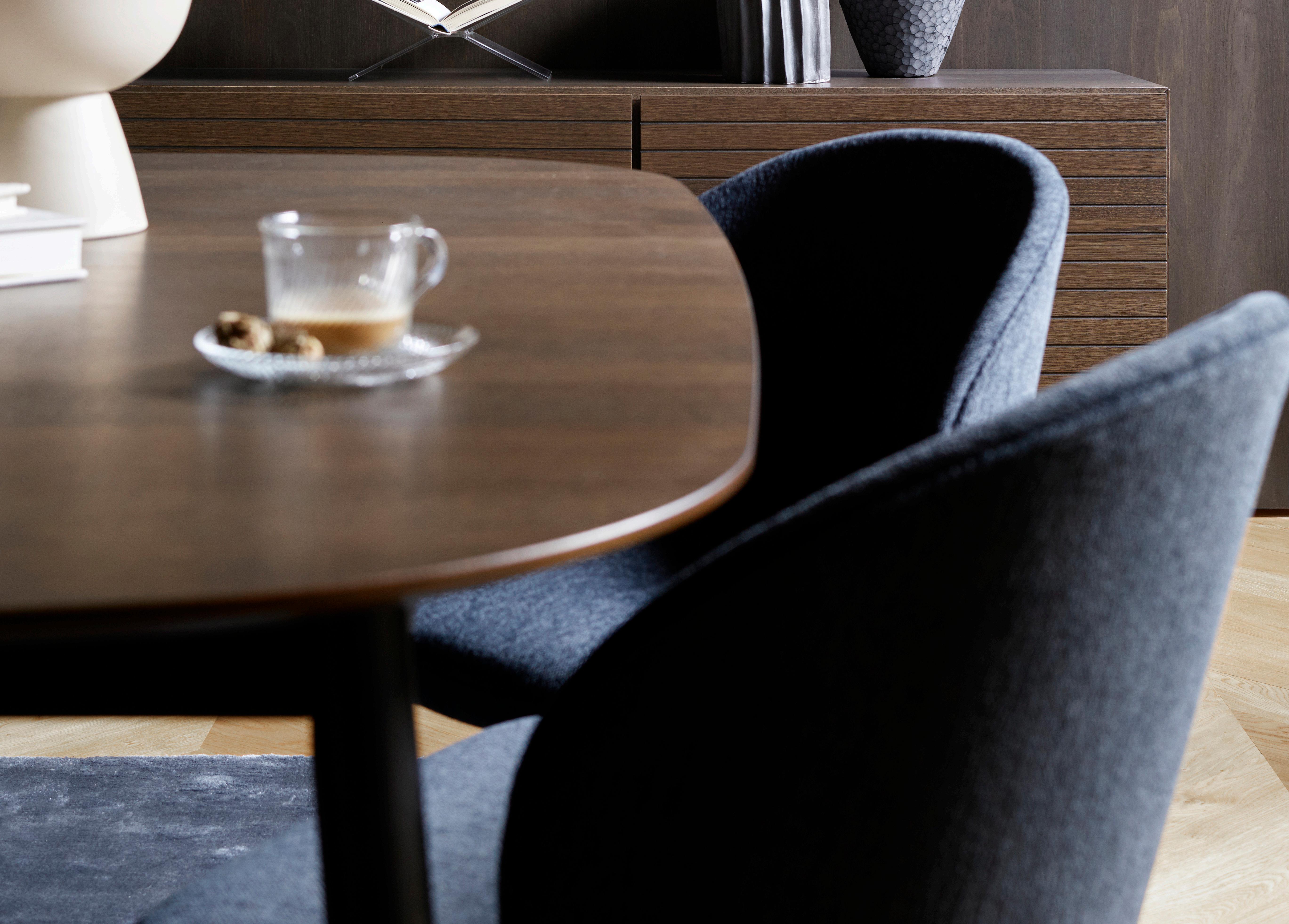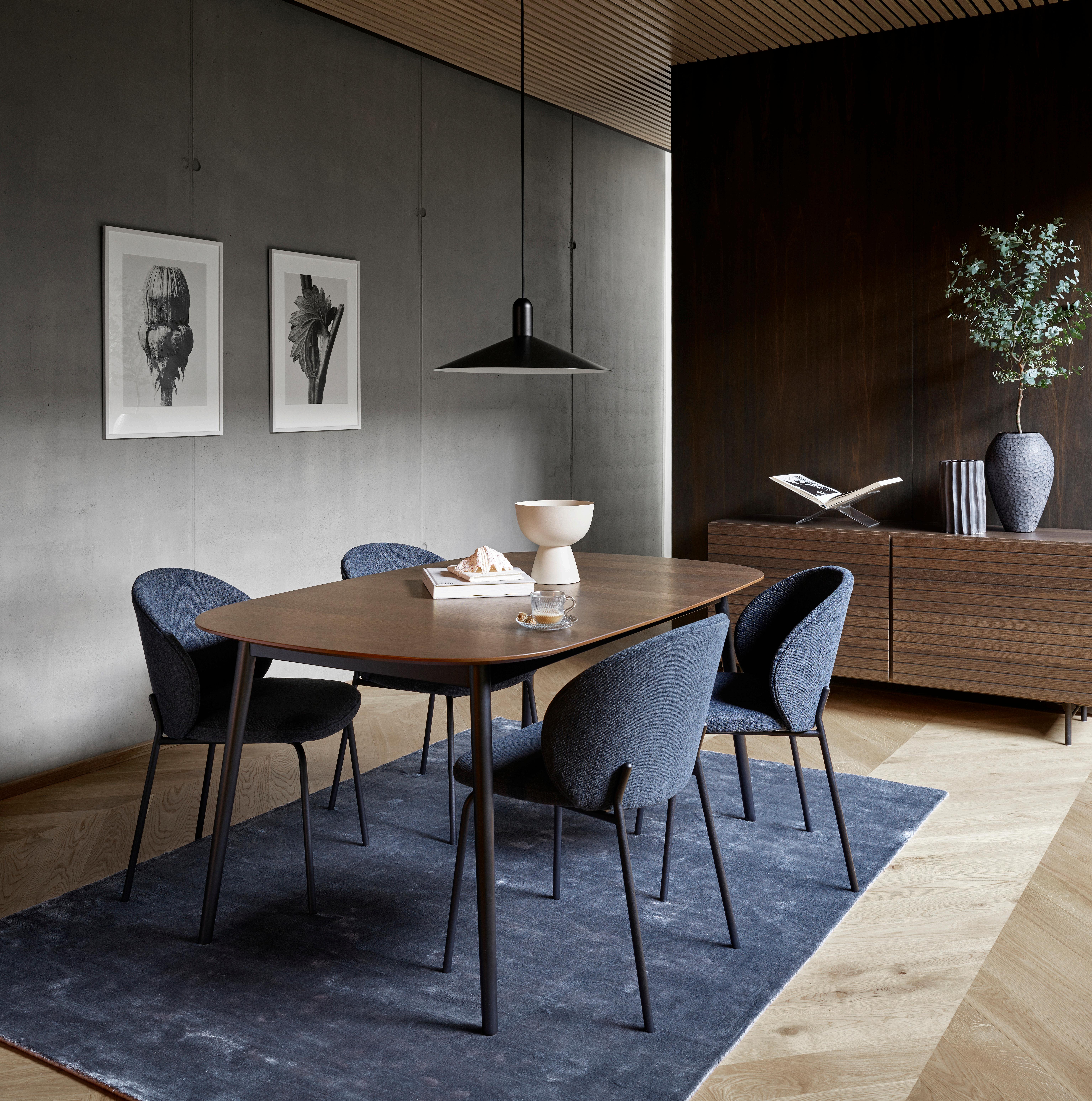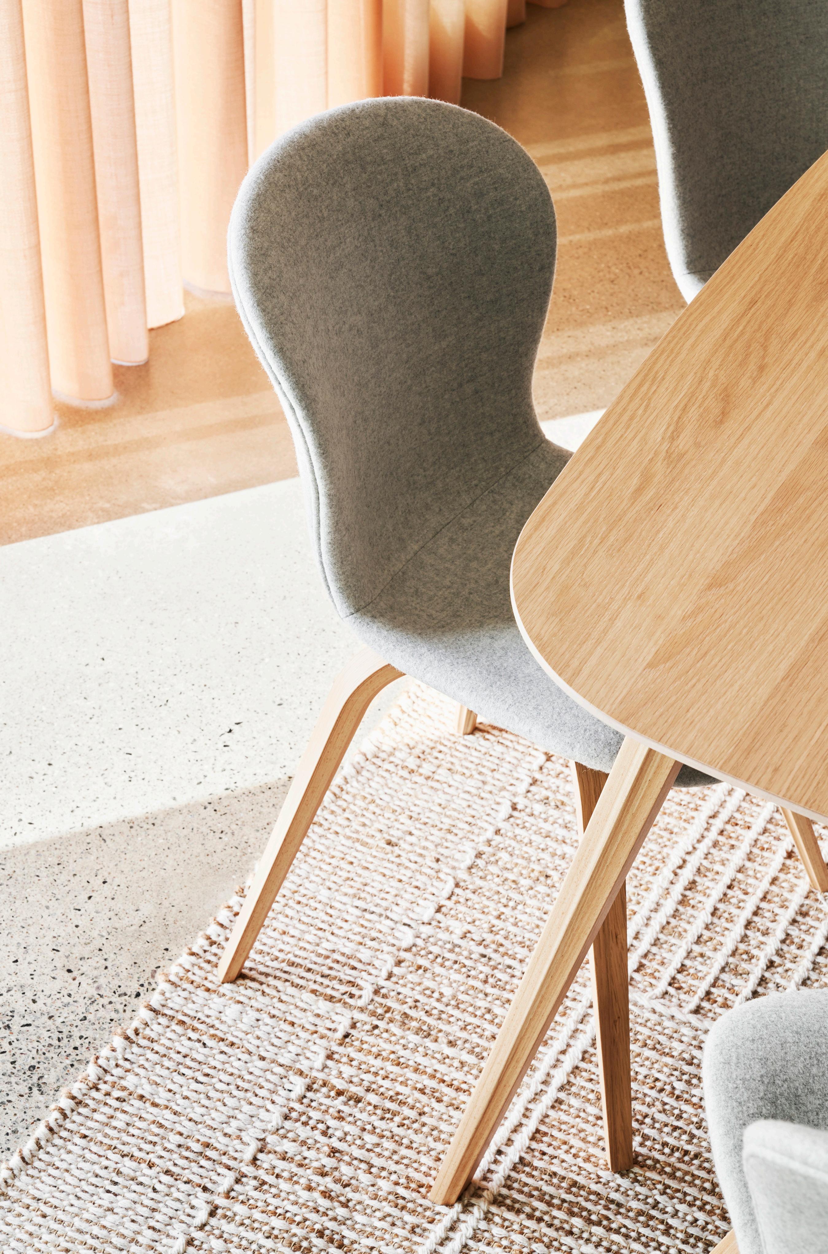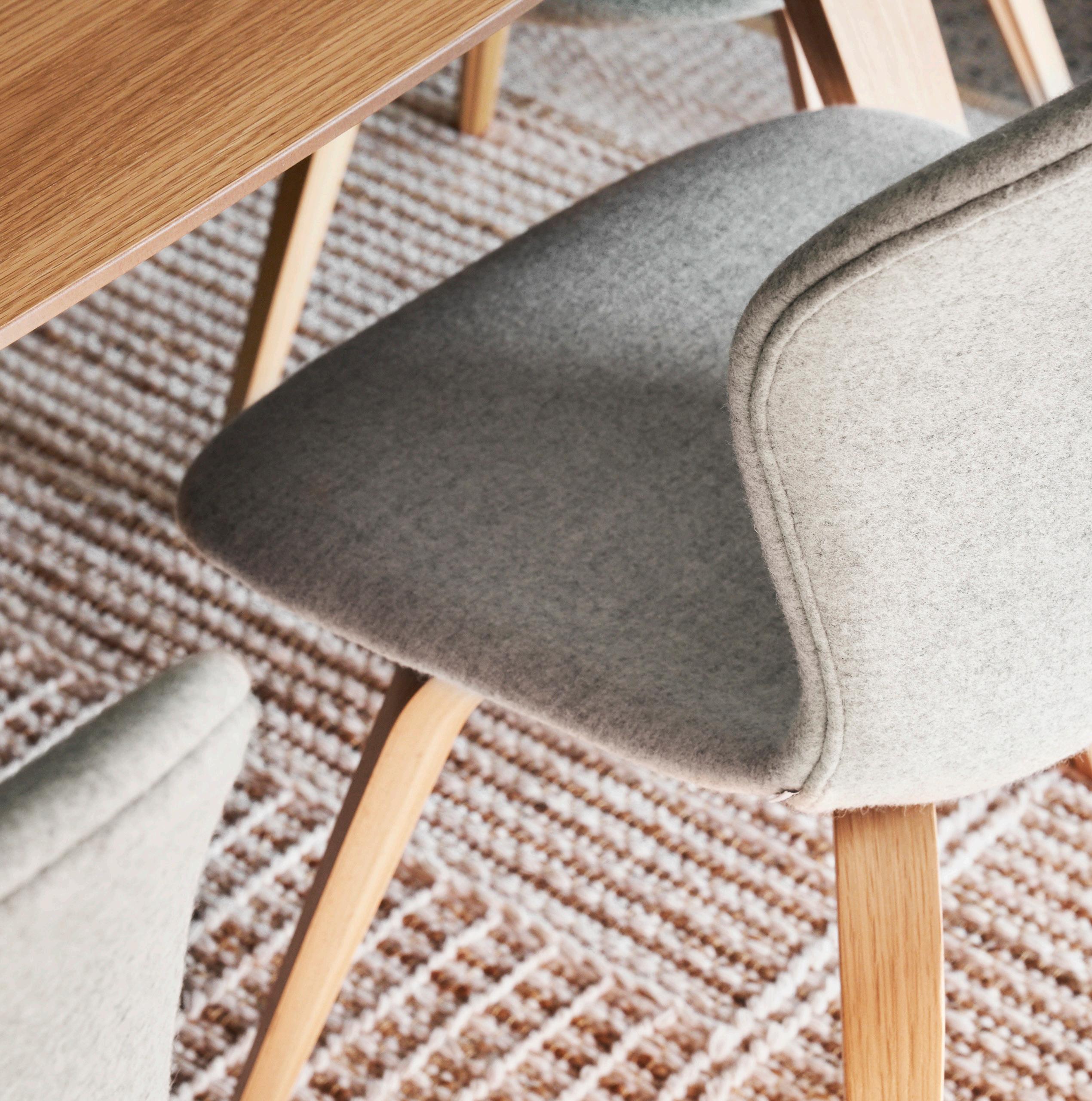 Beautifully balanced with a thin, elegant and timeless look, the Hauge dining table in natural oak with the Hauge chair in Wellington felt masterfully combines Danish functionality and form.