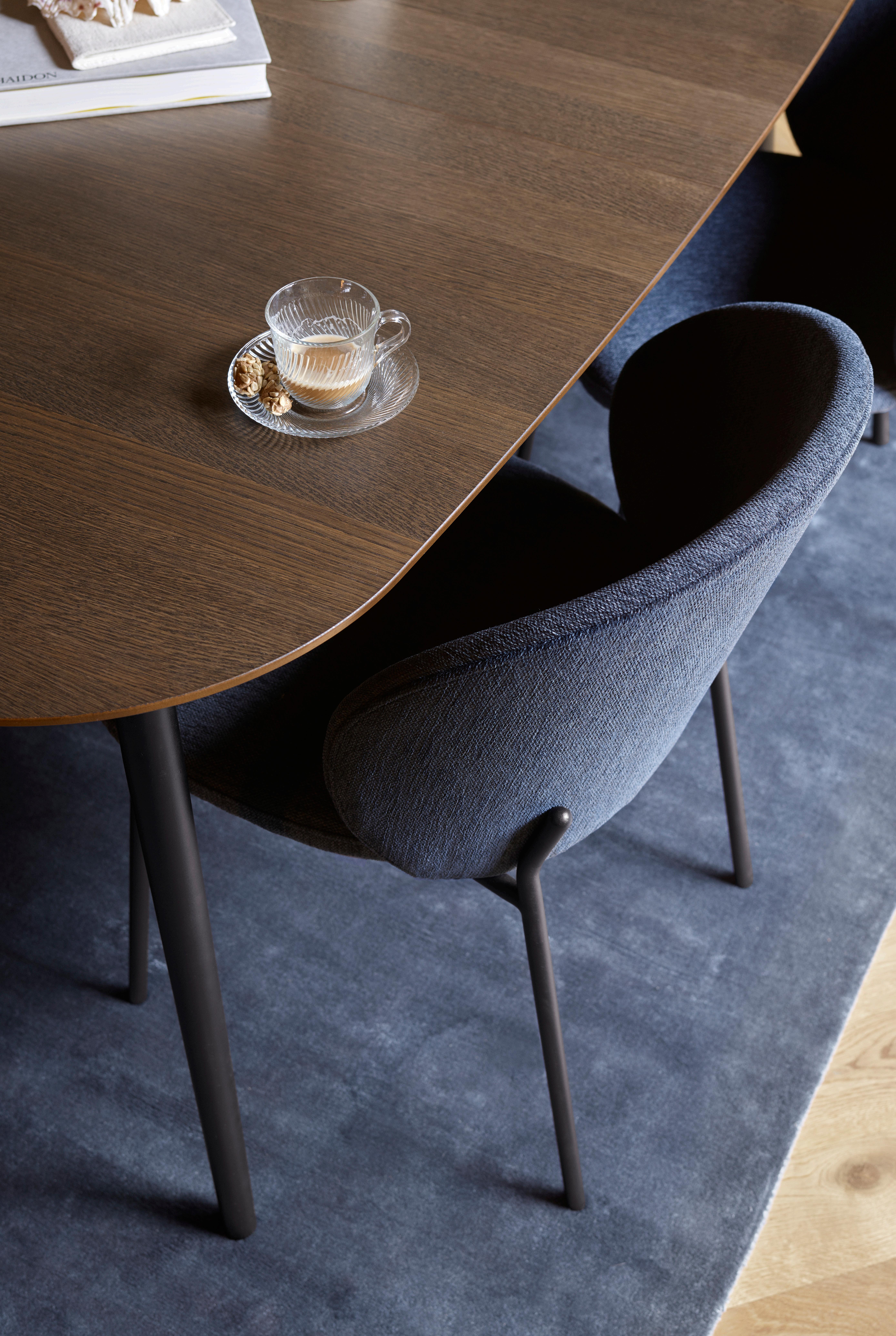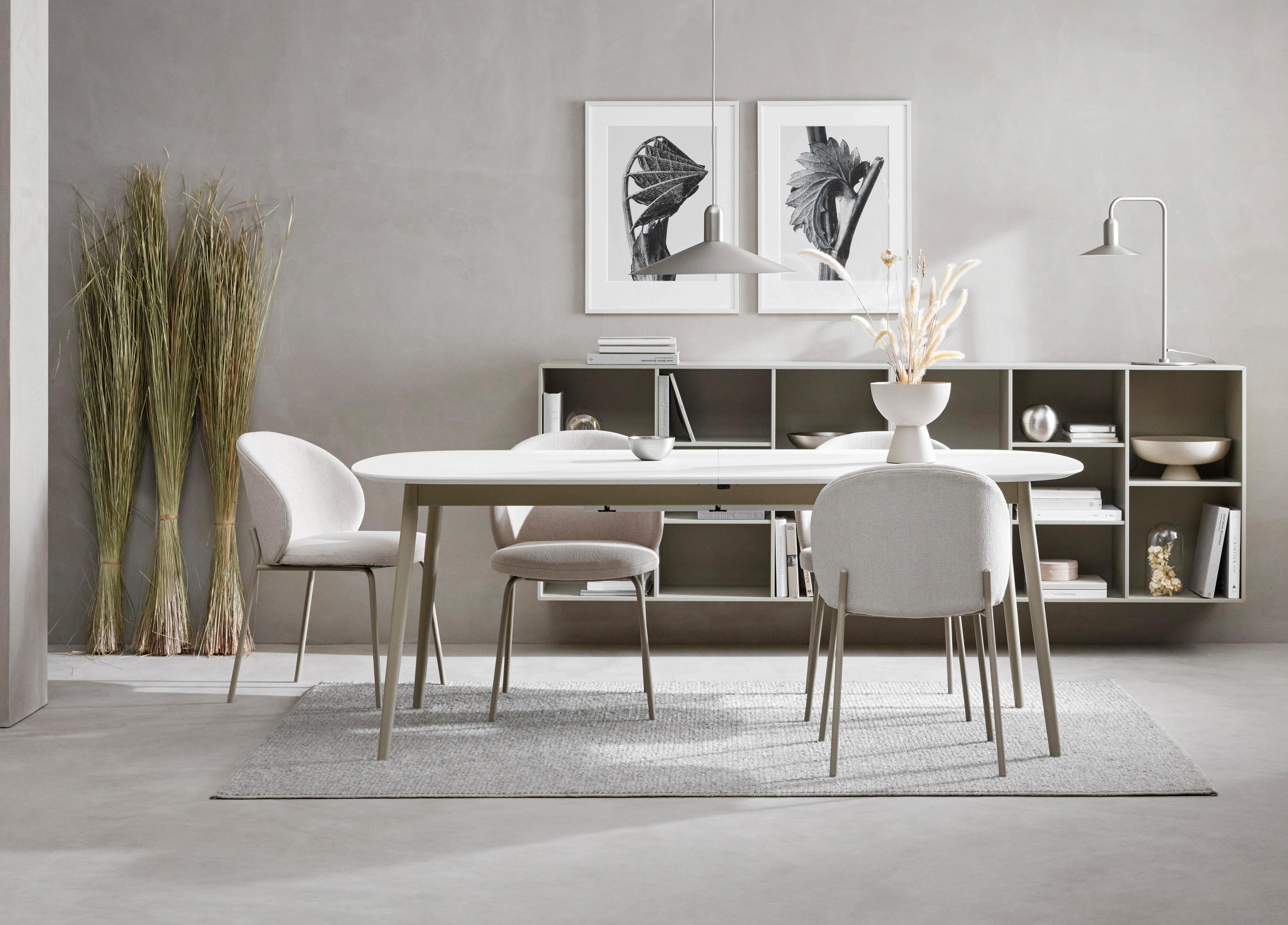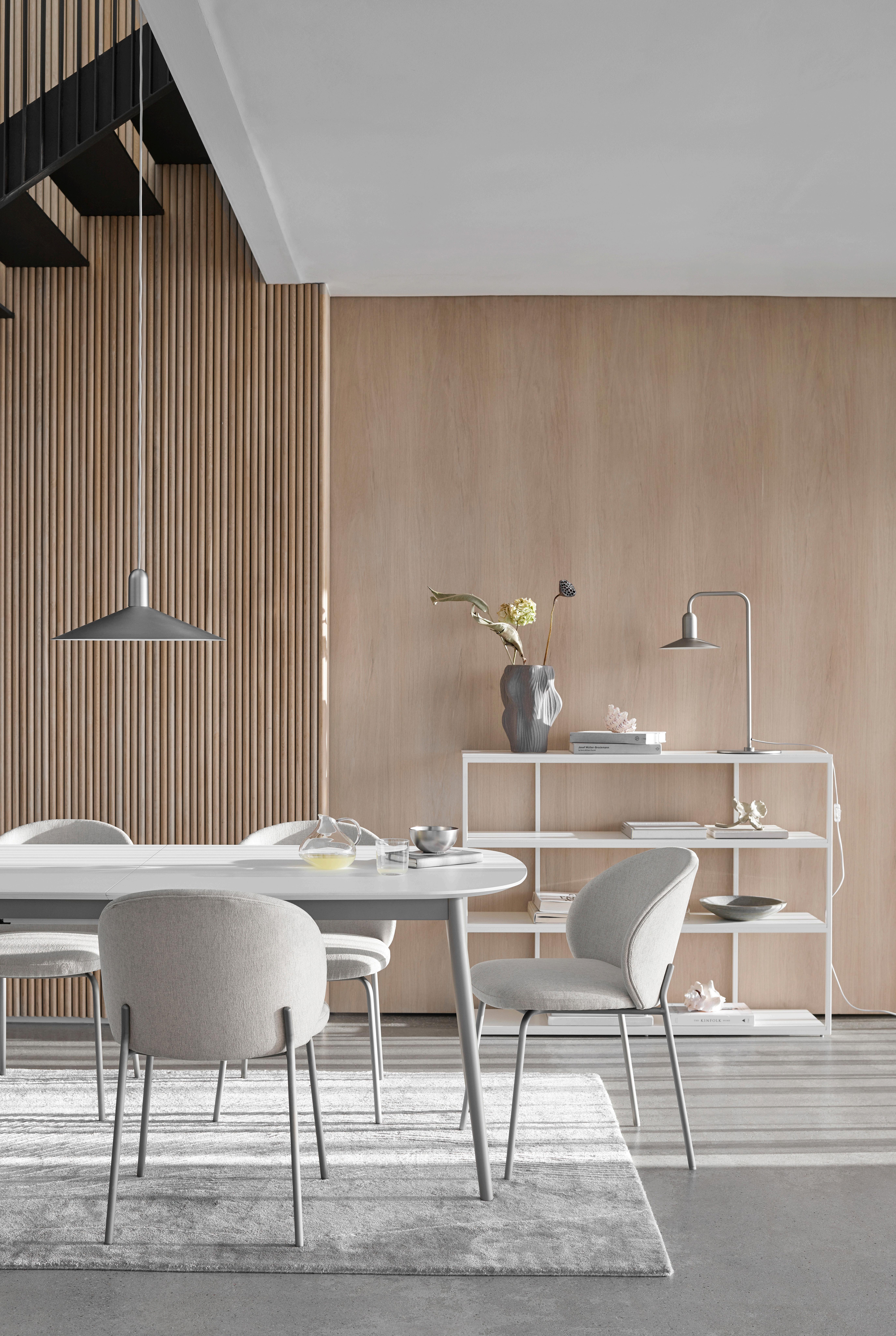 Beautifully balanced with a thin, elegant and timeless look, the Hauge dining table in natural oak with the Hauge chair in Wellington felt masterfully combines Danish functionality and form.