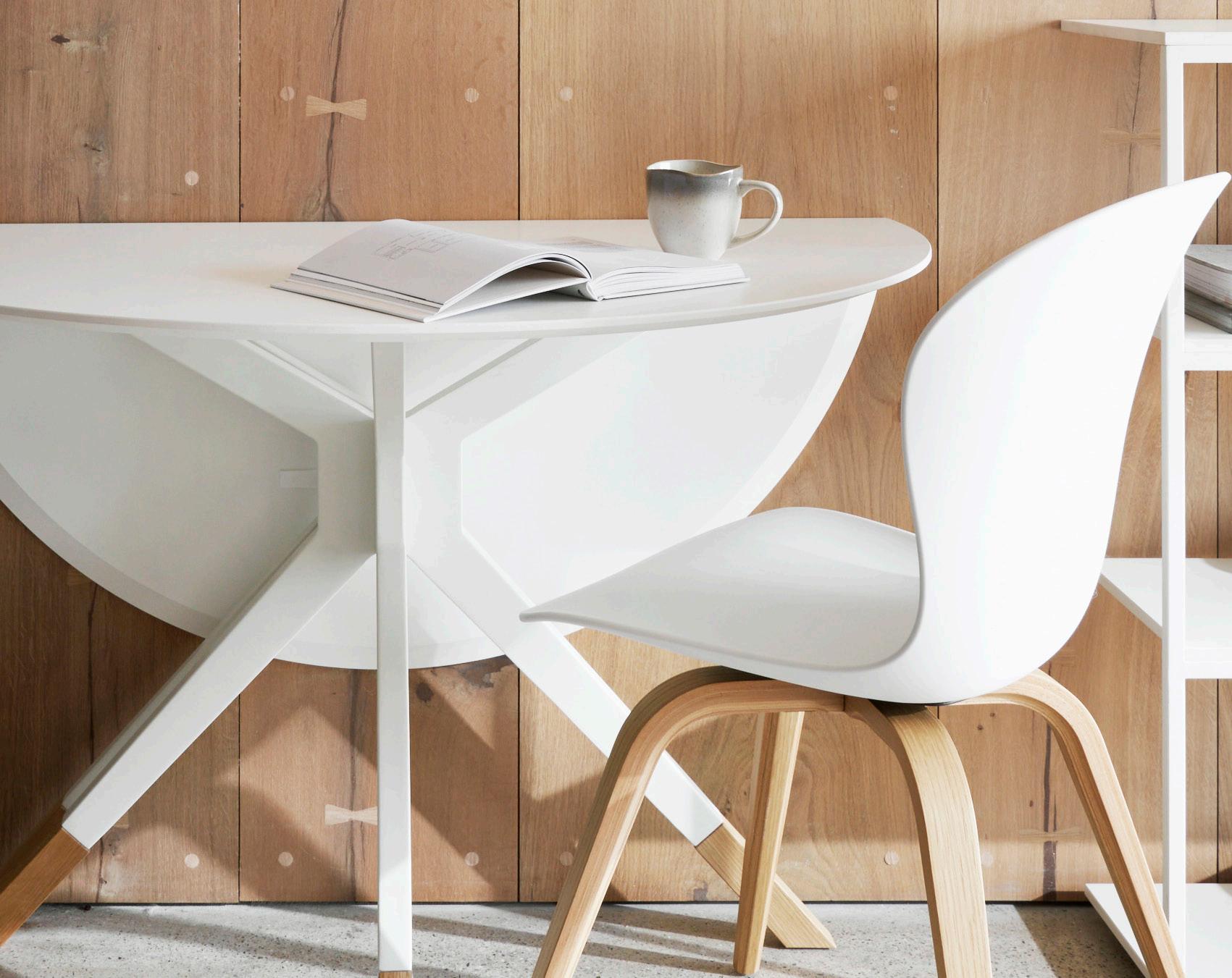 The Cupertino desk innovatively combines workspace and storage in a perfect home office solution; combined with the Bordeaux console for extra storage and a complete Scandinavian look. Available in three finishes.