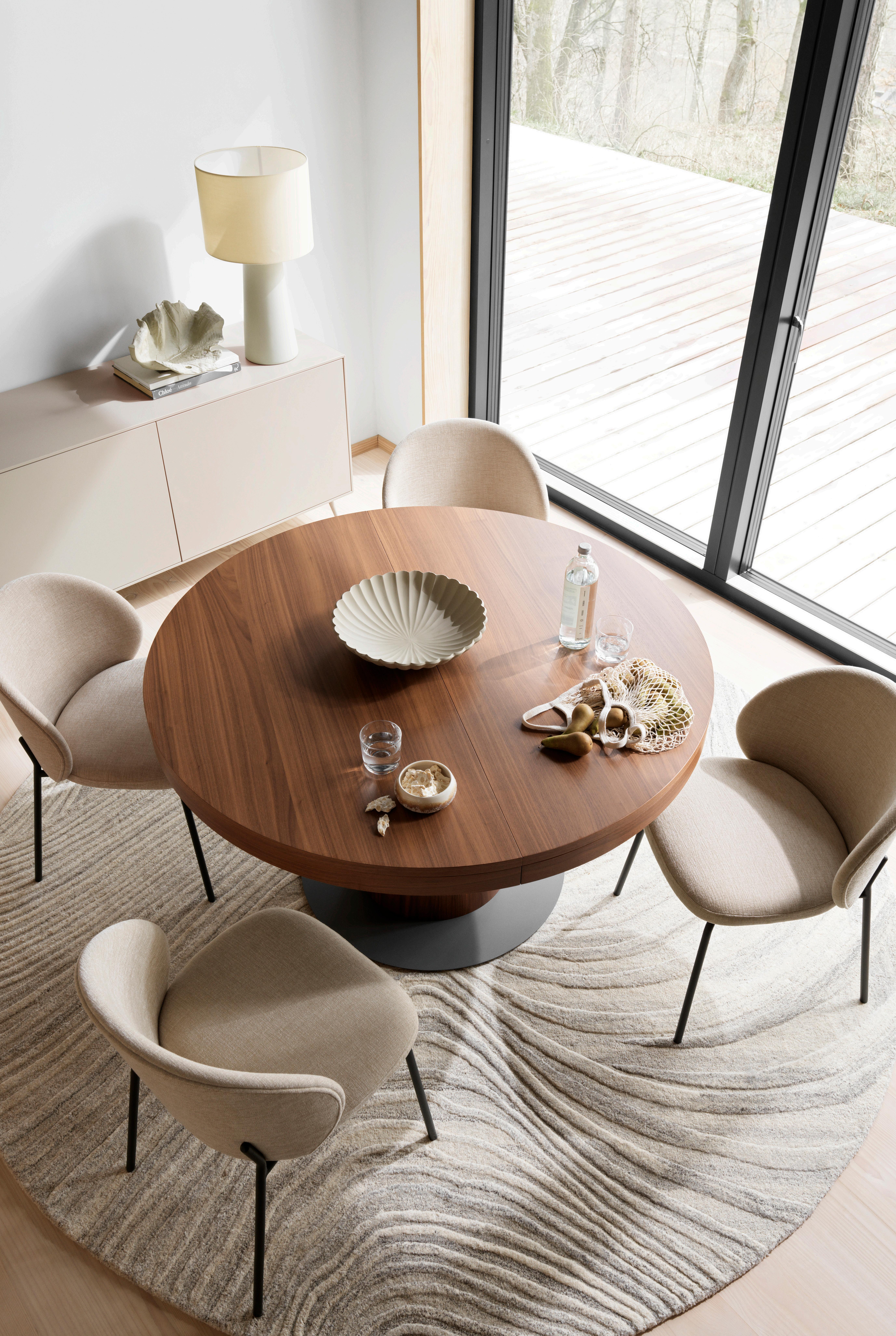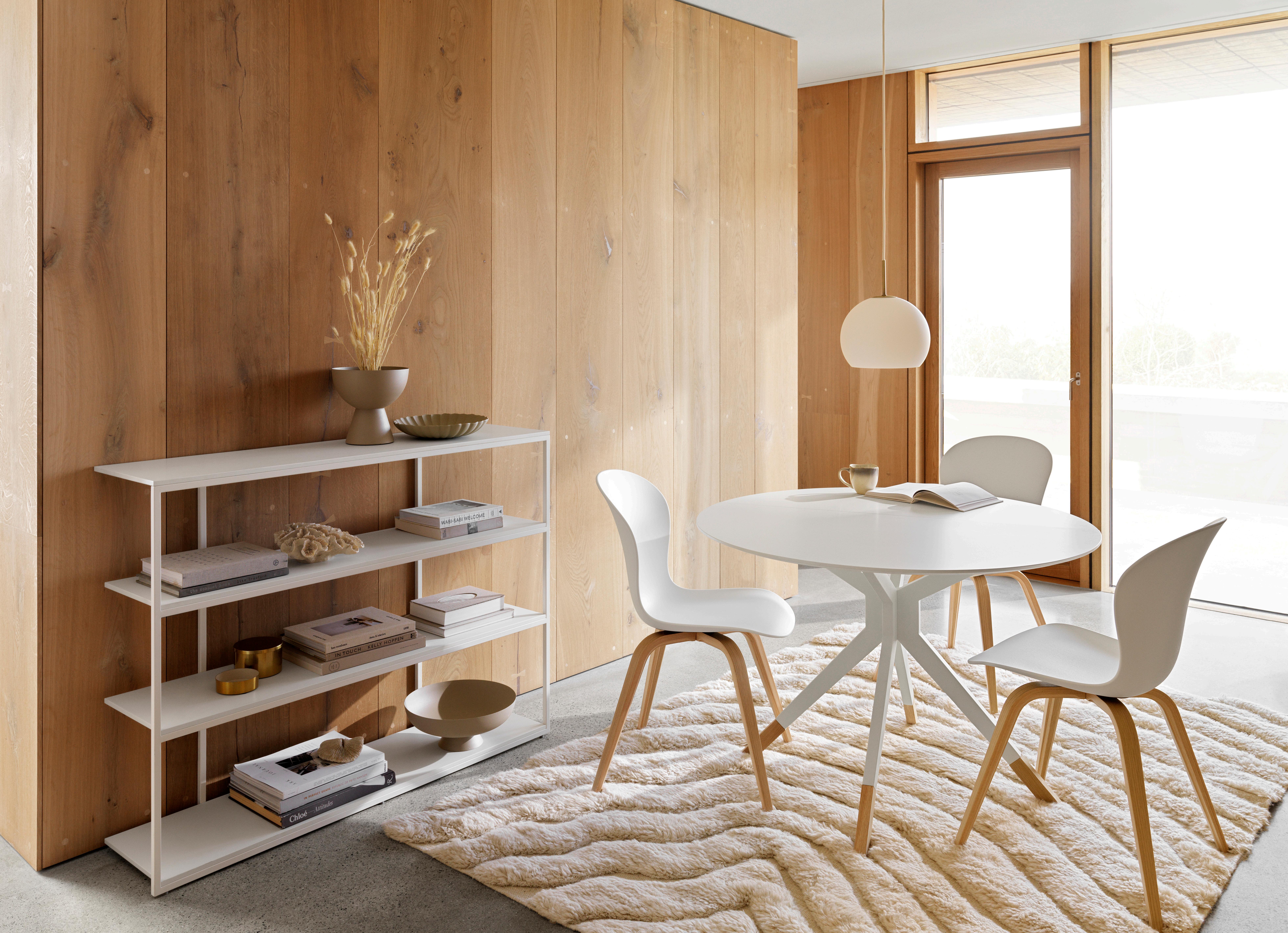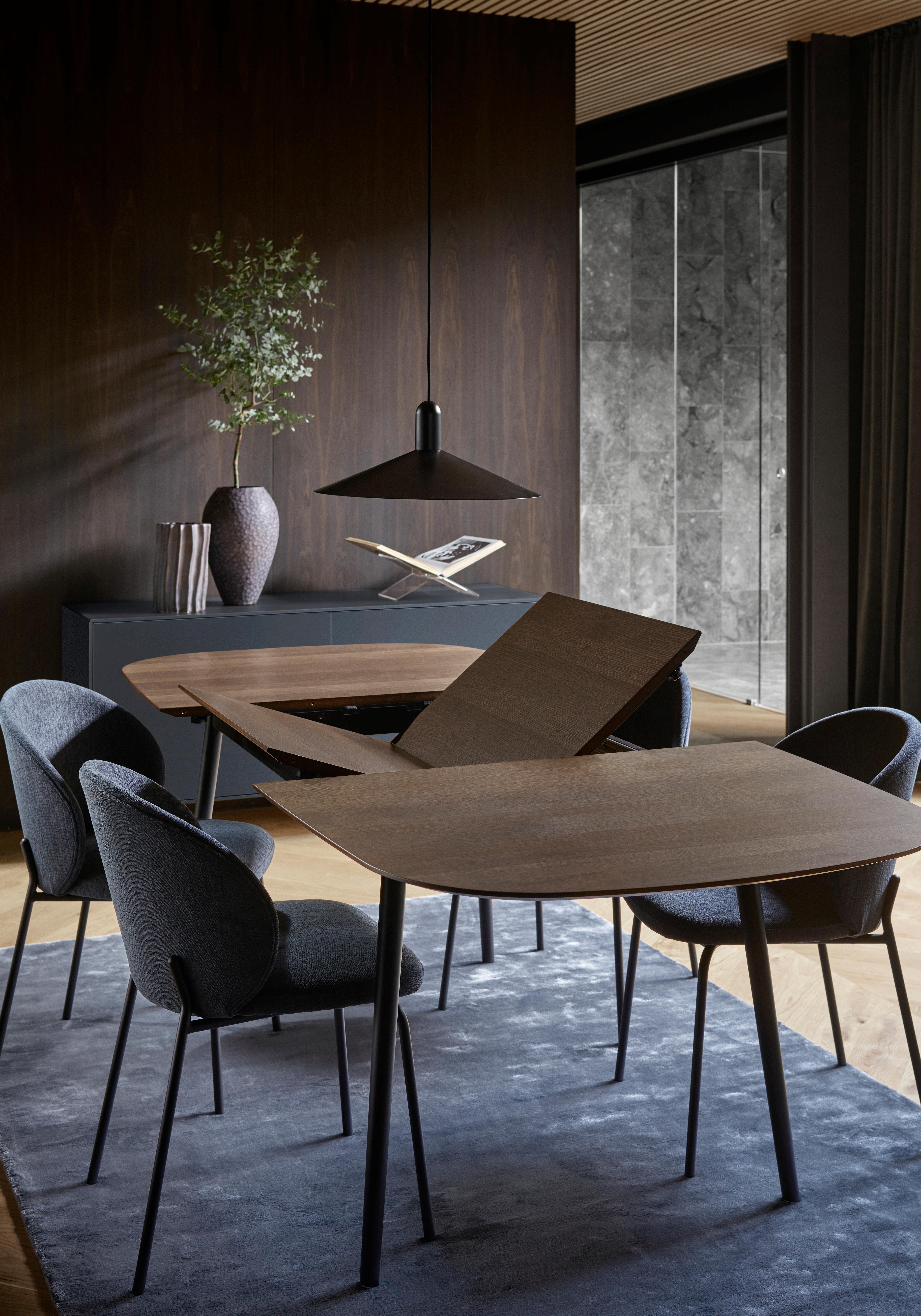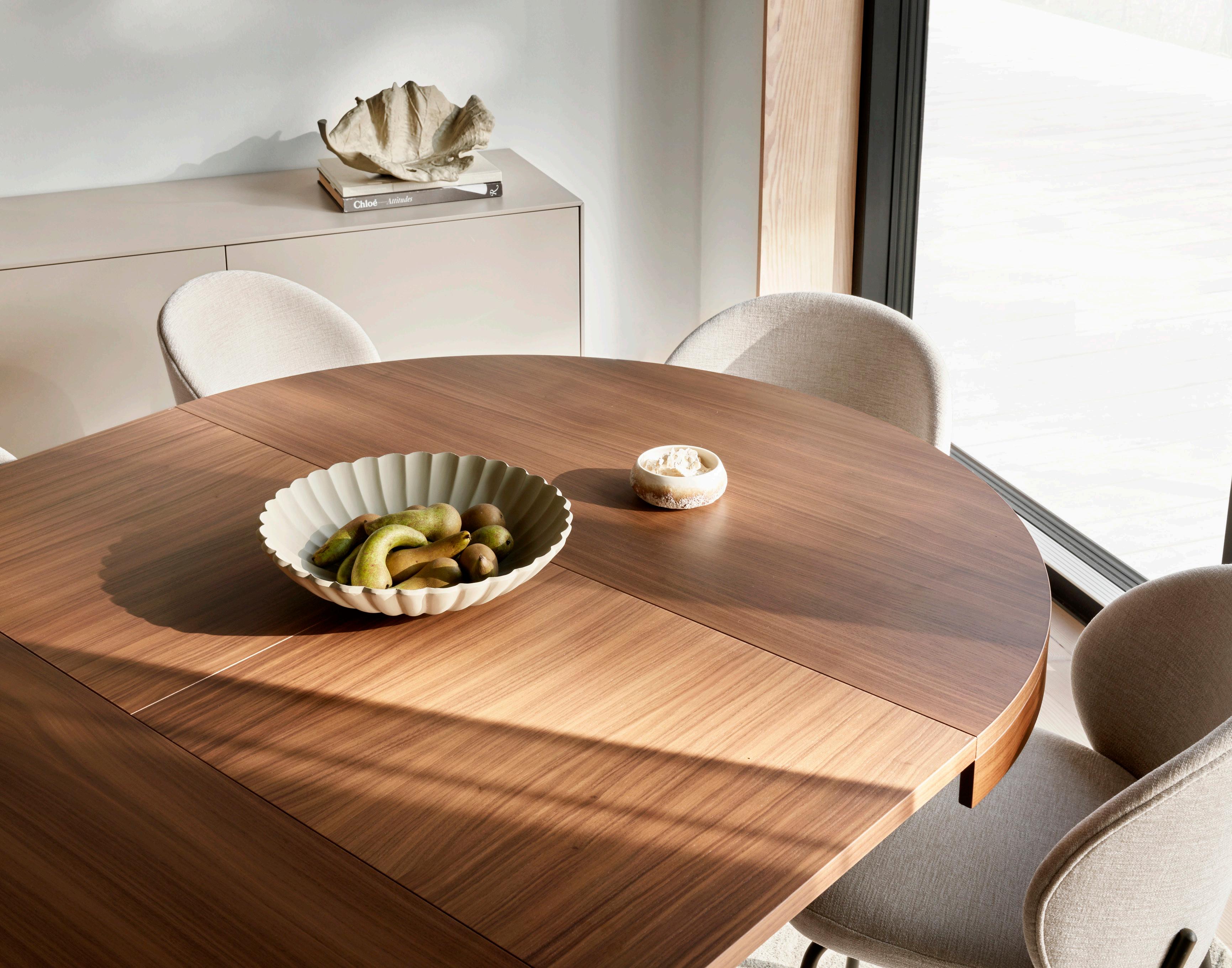 A must-have for any open-plan kitchen space or compact dining room. The Billund dining table adapts to suit you with the smoothest mechanics and a simple, foldable design. Flip the top down or up and have room for five people. Available in three finishes.