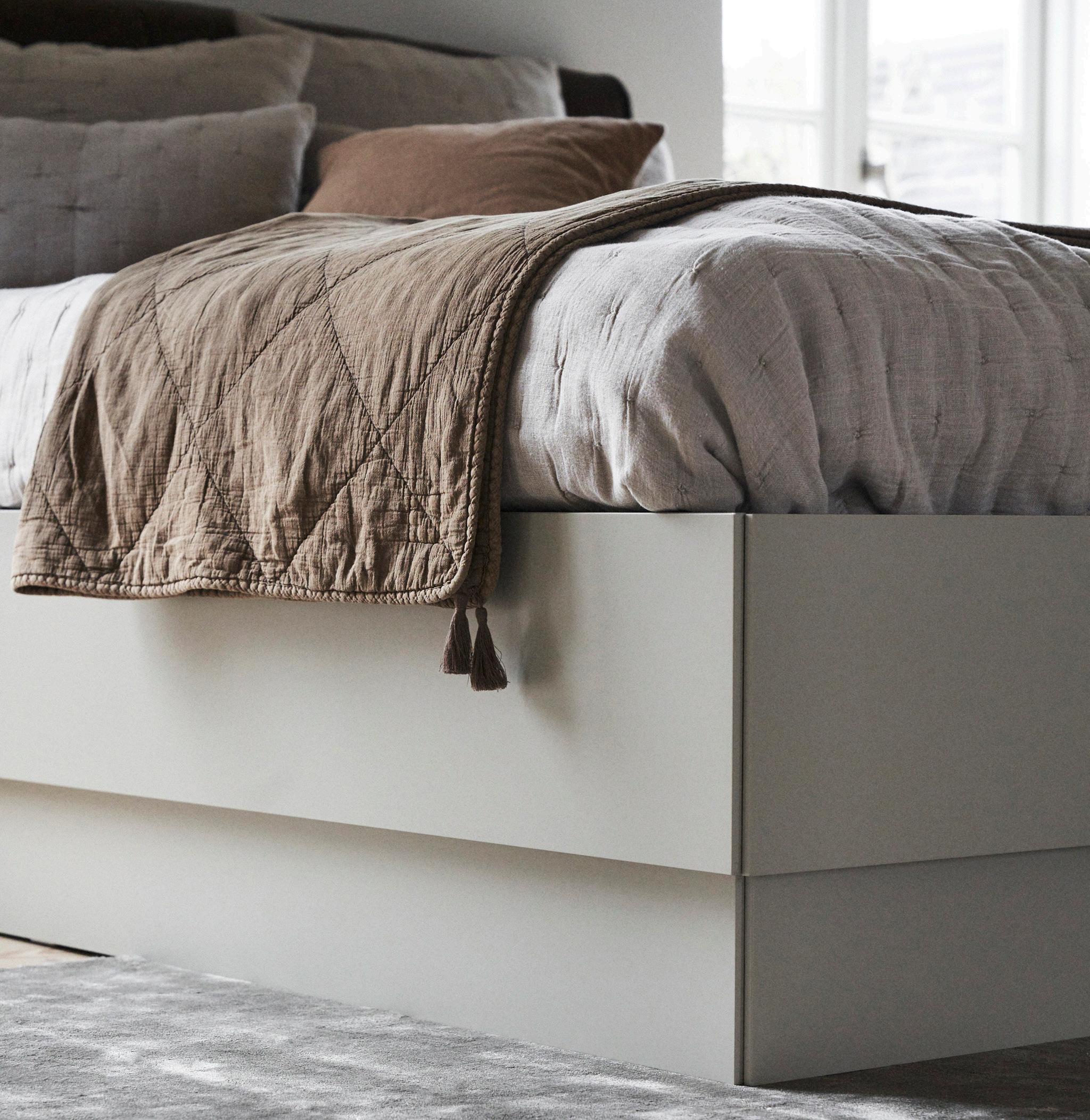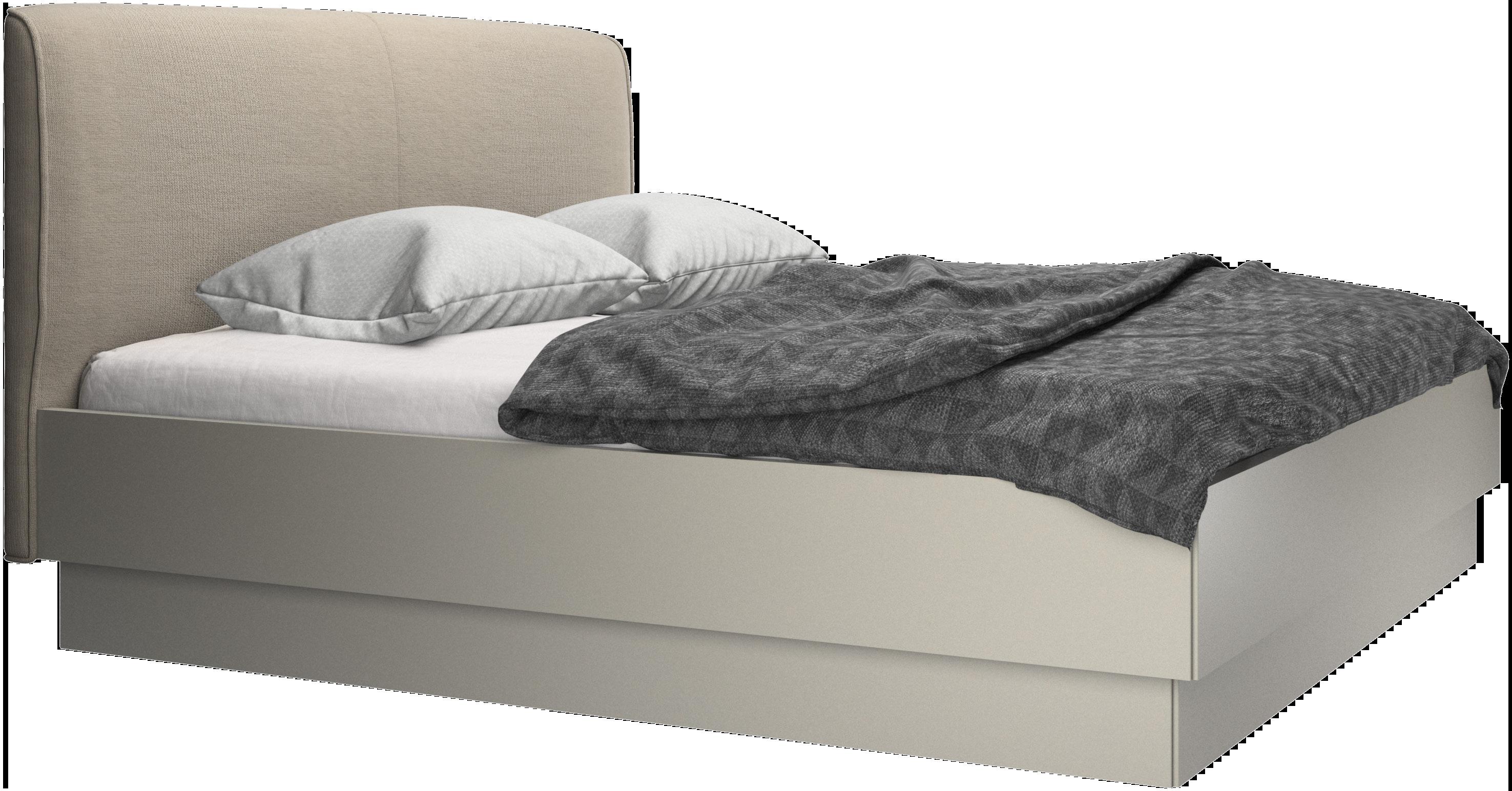 Relax and enjoy the comfort of Houston. The soft headboard with elegant design details ensures a welcoming look to your bedroom. Lift the bed frame up for plenty of storage space. Combined with Lugano night stands which are both available in two finishes.