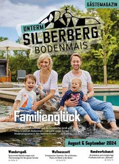Gerade für Familien bieten wir schier endlose Möglichkeiten der Freizeitgestaltung: Ob Wanderungen, die Groß und Klein Spaß machen, zum Beispiel auf den Themenwegen „Ameisenstraße“ und „Woid Woifes Welt“, ein Besuch auf dem Erlebnisberg Silberberg oder im JOSKA Glasparadies mit seinem riesigen Kinderland, oder Wasserspaß in unserem schönen Freibad – in Bodenmais hat Langeweile sicherlich keine Chance. Detaillierte Infos finden Sie ab Seite 32.