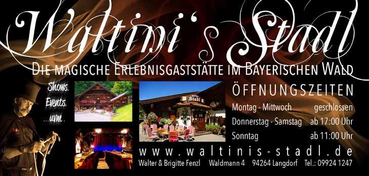 Die Informationen in diesem Magazin basieren auf Informationen der Bodenmais Tourismus & Marketing GmbH, Veranstaltern und Presseagenturen. Der Herausgeber und die Region übernehmen für Vollständigkeit, abgesagte Veranstaltungen, für Übertragungsoder sonstige Fehler sowie für unverlangt eingesandte Manuskripte und Fotos keine Haftung. Ein Nachdruck ist nur mit Quellenangabe gestattet.