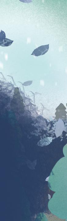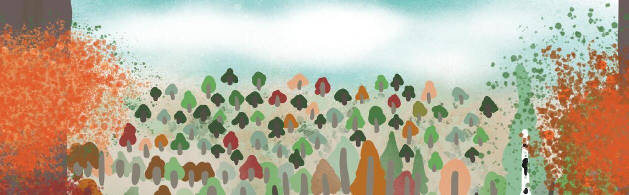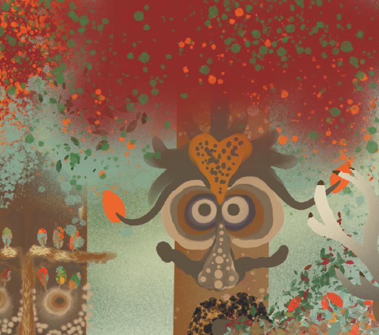 Schritt für Schritt werden die Bäume immer seltsamer. Sie wirken verzaubert. Sonderbare Stimmen hallen durch den Wald. Es scheint, als könnten die Bäume sprechen.