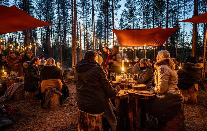 Bland de 100 personer som slagit sig ner på stubbarna finns besökare från USA, Kanada, Italien, Tyskland men också en hel del Bodensare. Med biljettpriser på 7000 kronor per person riktar sig festivalen främst mot finsmakare inom high end-segmentet, precis som Bodens besöksnärings flagg skepp Treehotel och Arctic Bath här i närhe ten. En av gästerna är Isabel Nybom som bor i Stockholm men kommer från Boden.