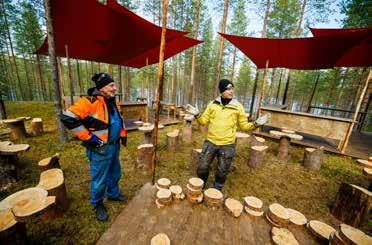 Among the 100 people who settled down on the stumps are not only visitors from the USA, Canada, Italy and Germany but also a number of Boden locals. With ticket prices of SEK 7,000 per person, the festival is primari ly aimed at high-end connoisseurs, just like Boden’s tourism industry flagship Treehotel and Arctic Bath, both close to here. One of the guests is Isabel Nybom, who lives in Stockholm but is originally from Boden.