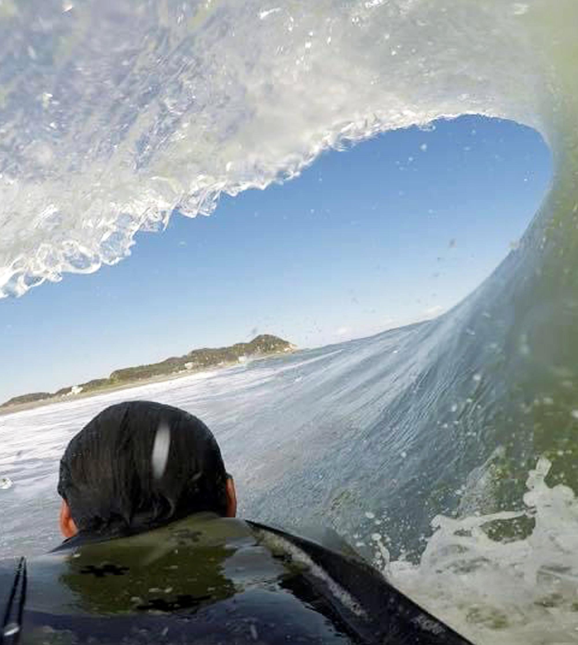 In ‘Greenough fashion’, I also had a great run of experimenting with ways to film tube riding using a GoPro and a back mount.