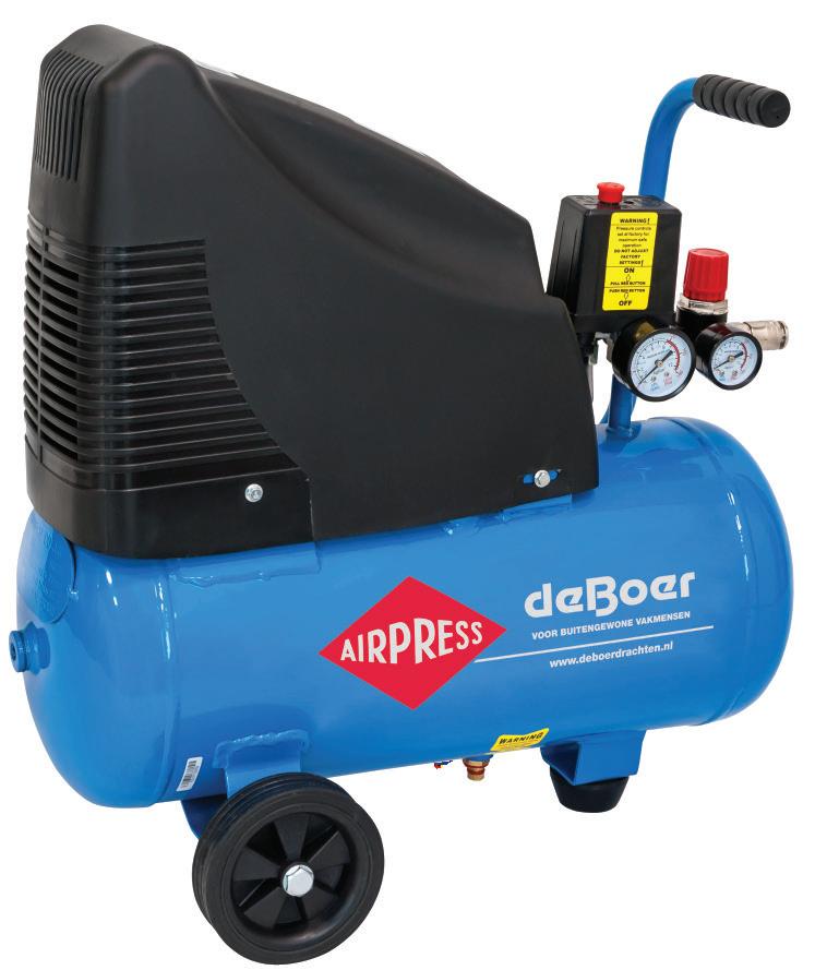 Inclusief 3-delig accessoire set. Aanzuigcapaciteit 215 ltr/min, ketelinhoud 25 liter, motorvermogen 1.5 pk / 1.1 kW, maximumdruk 8 bar, 1 cilinder, 1 trap, voltage 230 Volt/50 Hz/1 Ph. Afmetingen: 58 x 25.5 x 58 cm.