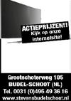 De Televisie Specialist met een verrassend lage prijs! Grootschoterweg 105 BUDEL-SCHOOT (NL) Tel. 0031 (0)495 49 36 16 www.stevensbudelschoot.nl UW (O)LED-TV ADRES! ACTIEPRIJZEN!! Kijk op onze internetsite!
