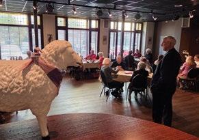 een lunch. Iedere speelronde ontmoetten de bridgers weer andere mensen. Kunstschaap Sjiep ging even langs bij ‘t Mierles Huukske.