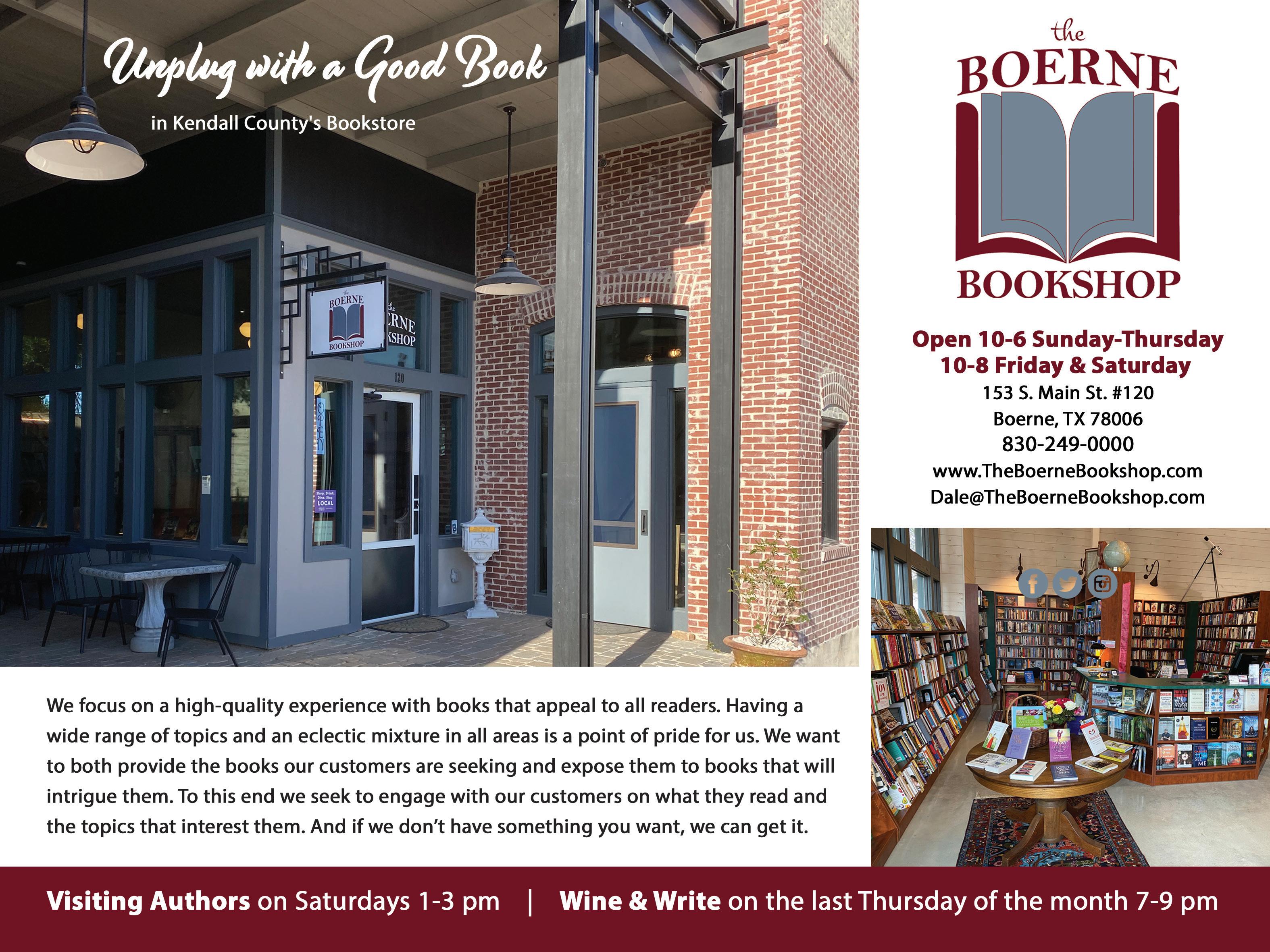 Visit The Boerne Bookshop 153 S. Main St. #120 Boerne, TX 78006 830-249-0000 www.TheBoerneBookshop.com