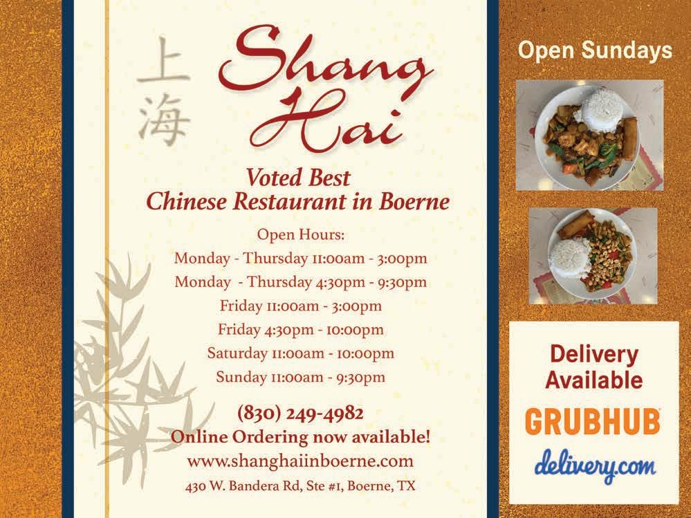 FOLLOW THEM ON SOCIAL: Instagram - @mapdbboernetx | Facebook - @michoacanboerne TikTok - @michoacanboerne HOURS: Monday – Thursday 11:30am to 8:00pm Friday and Saturday 11:30am to 9:00pm Sunday 12:00pm to 6:00pm WWW.HILLCOUNTRYEXPLORE.COM | JANUARY 2023 | 29