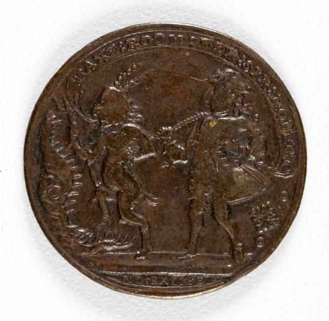 Placa en bronce elaborada para rendir homenaje al escritor vallecaucano Jorge Isaacs en el centenario de su nacimiento. Excelente estado general.