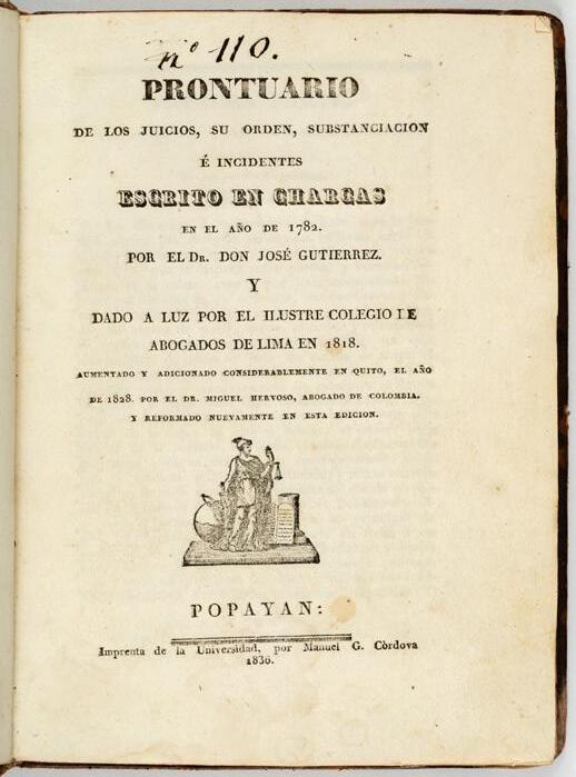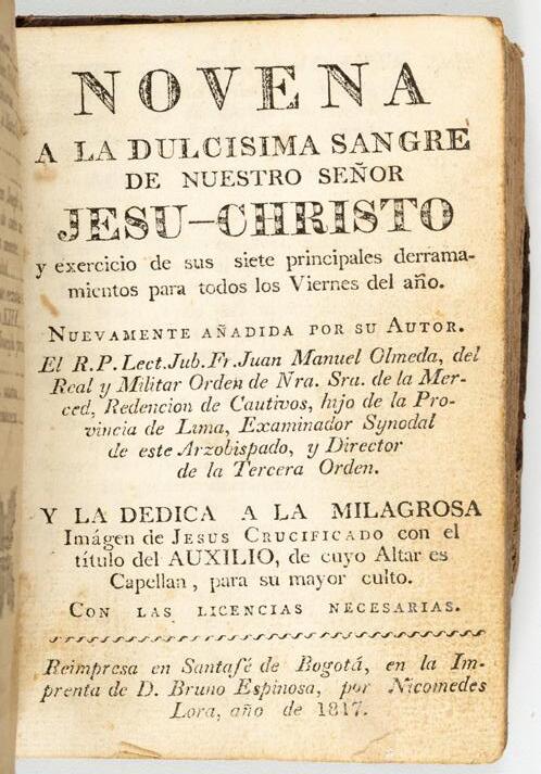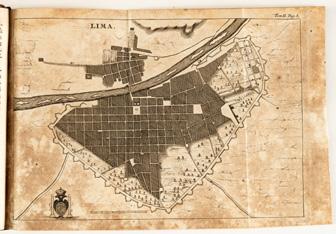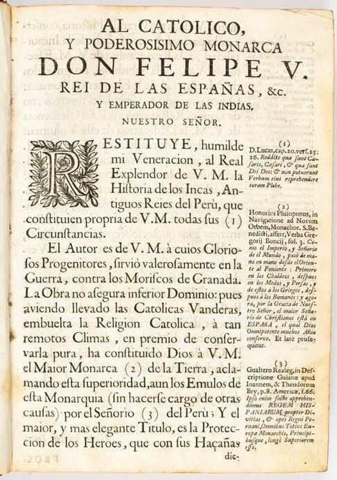 Texto clave para la historiografía del Perú. Pieza muy rara, con grabado dedicado a la Virgen. Conserva ex-libris de Camilo Mutis