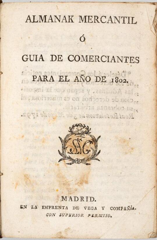Almanak mercantil o guía de comerciantes para el año 1802 s.a.