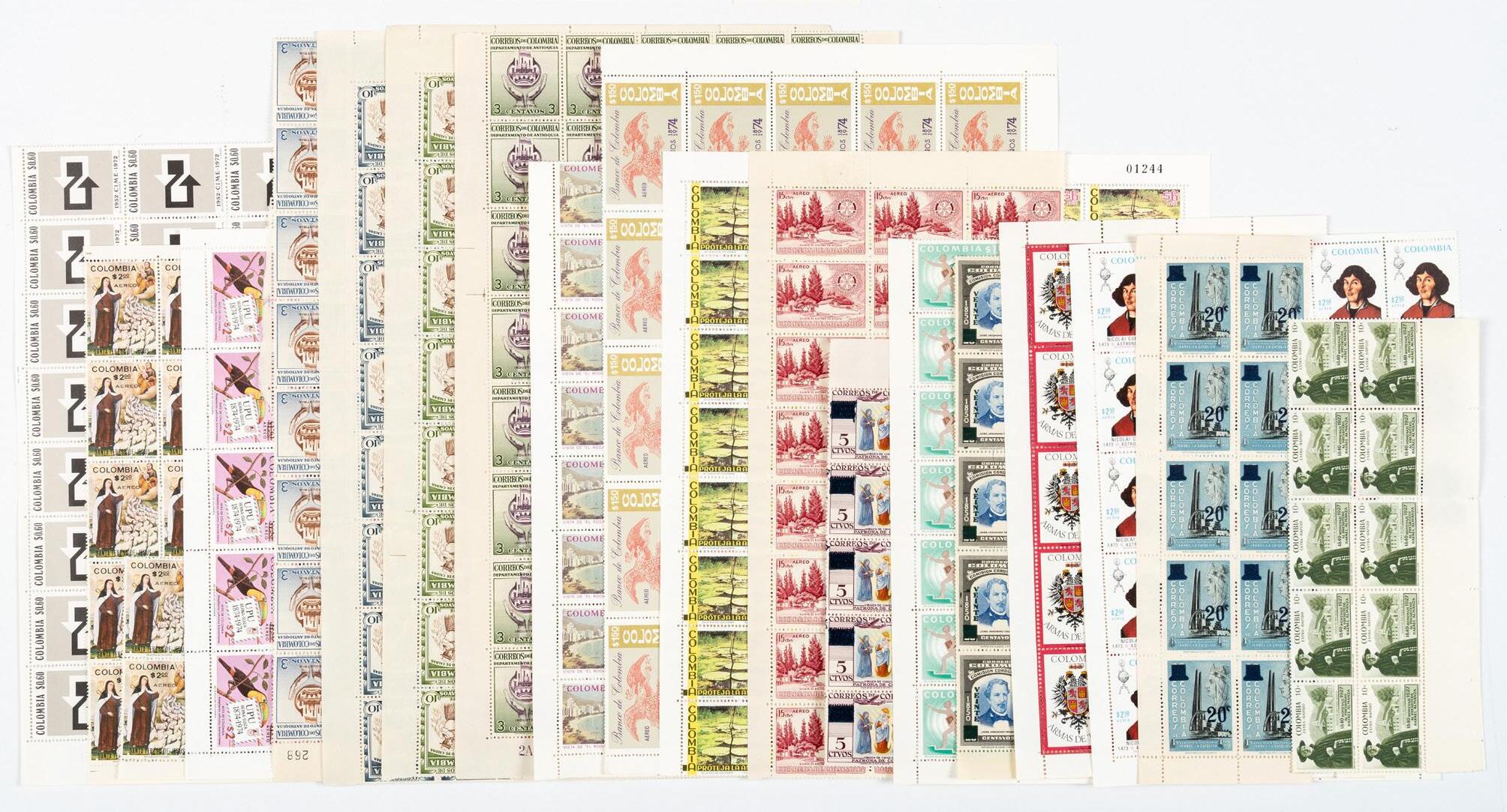 Colección de pliegos de sellos nuevos de Colombia 1953 - 1977.