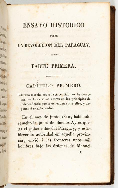 Primera edición de este libro que contempla el gobierno de José Gaspar Rodríguez de Francia en Paraguay, instaurado tras la Revolución de 1811, como un período clave en la consolidación del Estado y la afirmación de su soberanía nacional. Francia, tras ejercer como cónsul en 1813, fue designado Dictador Temporal en 1814 y finalmente Dictador Perpetuo en 1816, cargo que mantuvo hasta su muerte en 1840. Su administración se distinguió por la centralización del poder, la disolución de contrapesos institucionales y un aislamiento internacional que buscaba proteger la autonomía del país, lo cual se reflejó en políticas proteccionistas orientadas al autosostenimiento económico y al control del comercio exterior. Al mismo tiempo, reprimió la oposición, sofocó conspiraciones y restringio libertades individuales, aunque su dictadura otorgó estabilidad interna y permitió el desarrollo de una estructura estatal propia en medio de una región marcada por conflictos y guerras de independencia. Ejemplar muy rara en el mercado.