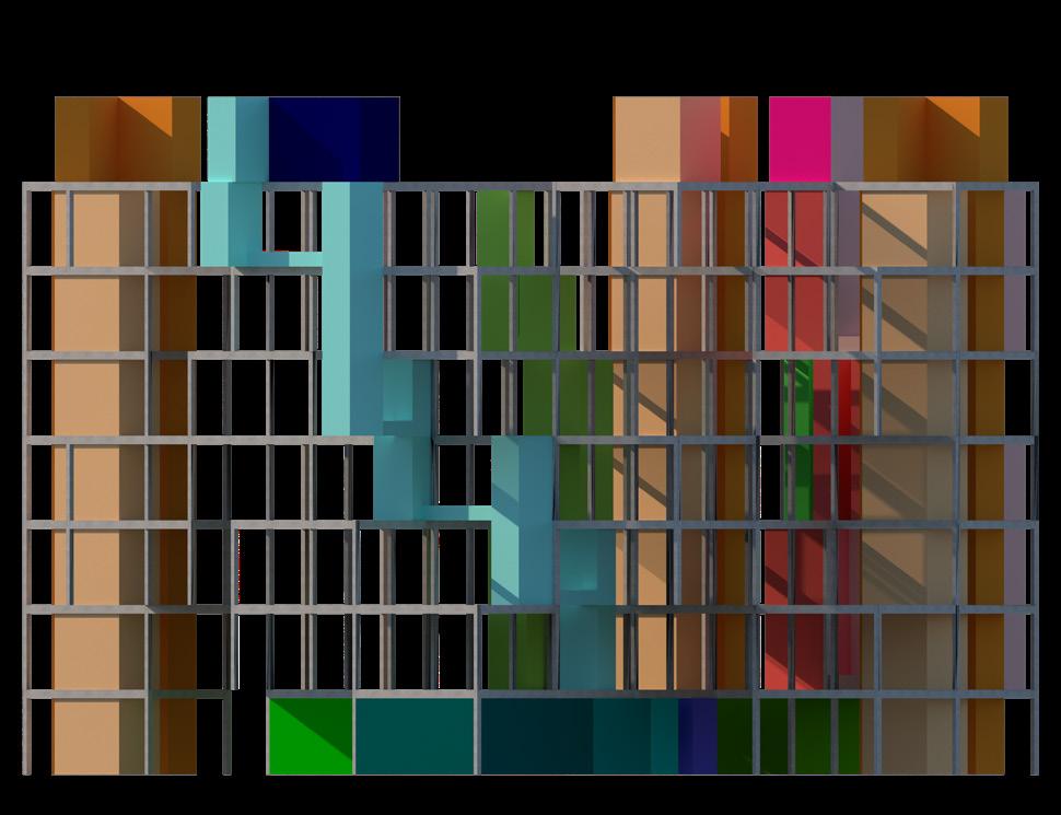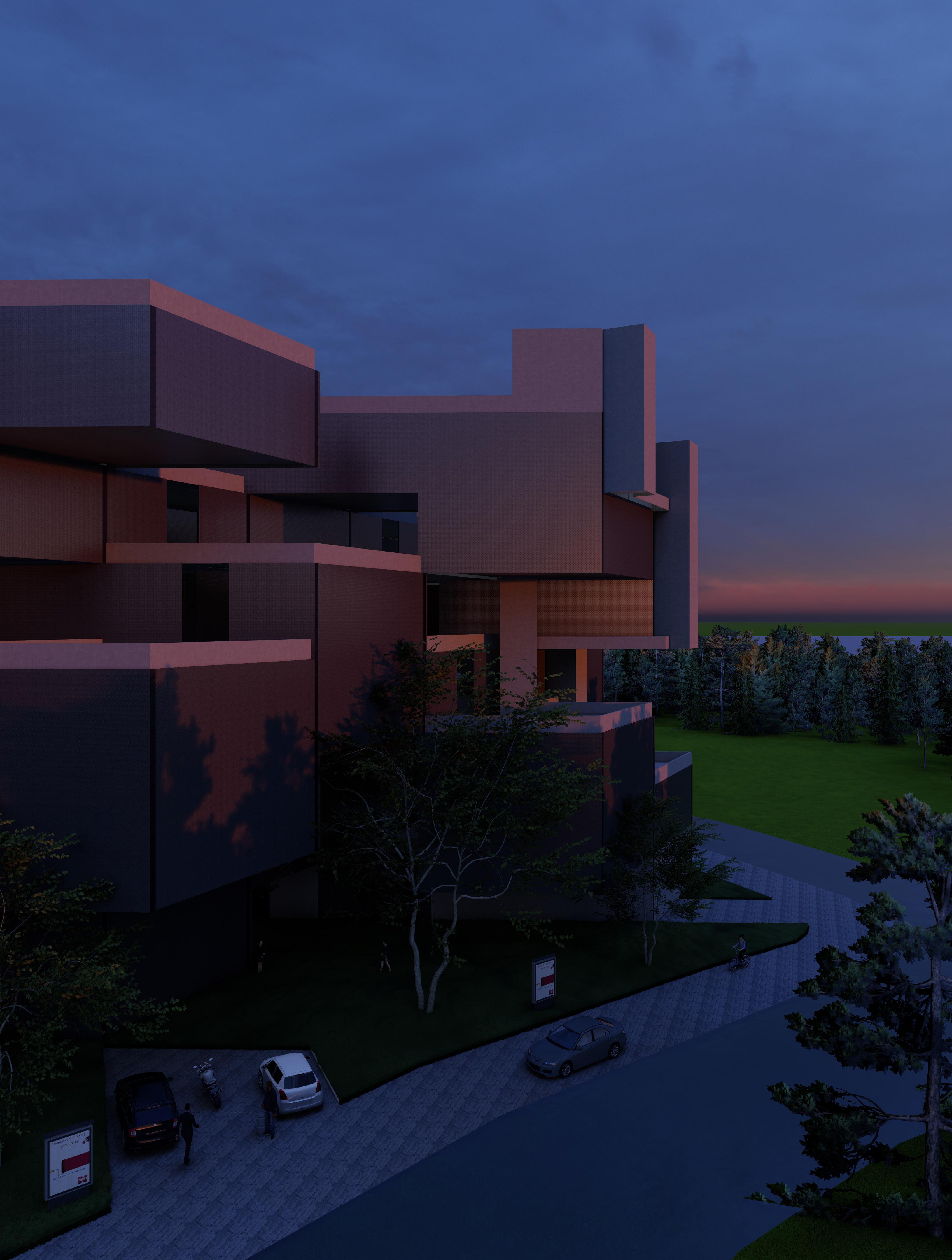 ‘Perforatio’ means porous. It is an Office project for a gaming company. The site was in Trivandrum, Kerala. The building was to be mechanically ventilated. I chose a diamond grid, rather than a square grid for utilising maximum area. The evolution of its volume was decided in a way to achieve maximum views and open spaces inside the usually bulky office towers. The project helped me learn about medium rises and the basics of designing a mechanically ventilated building.