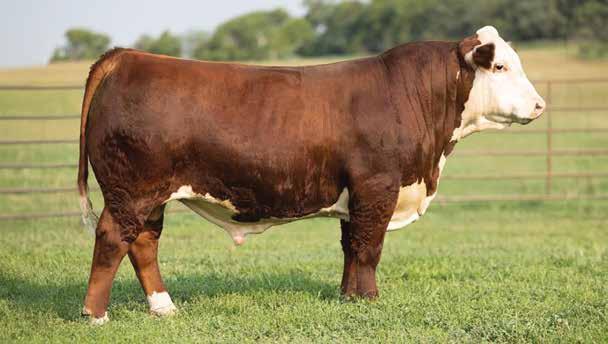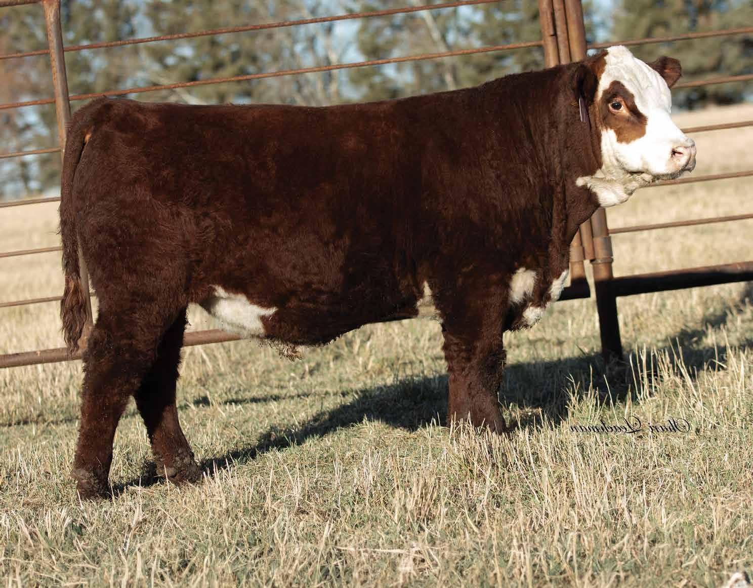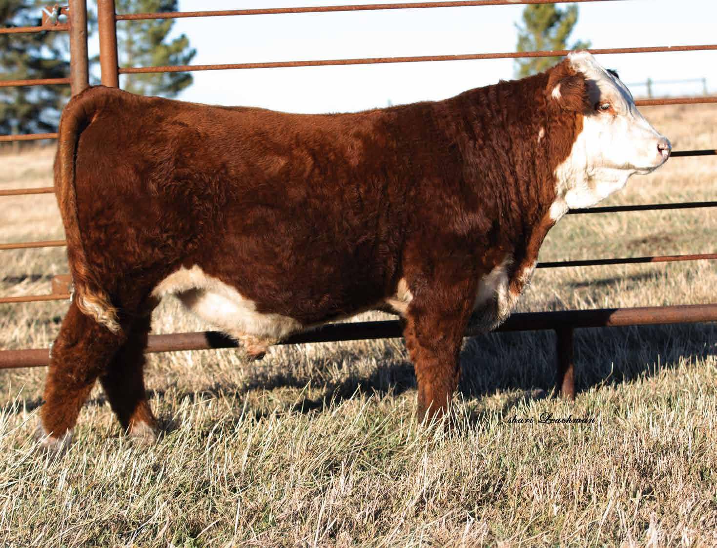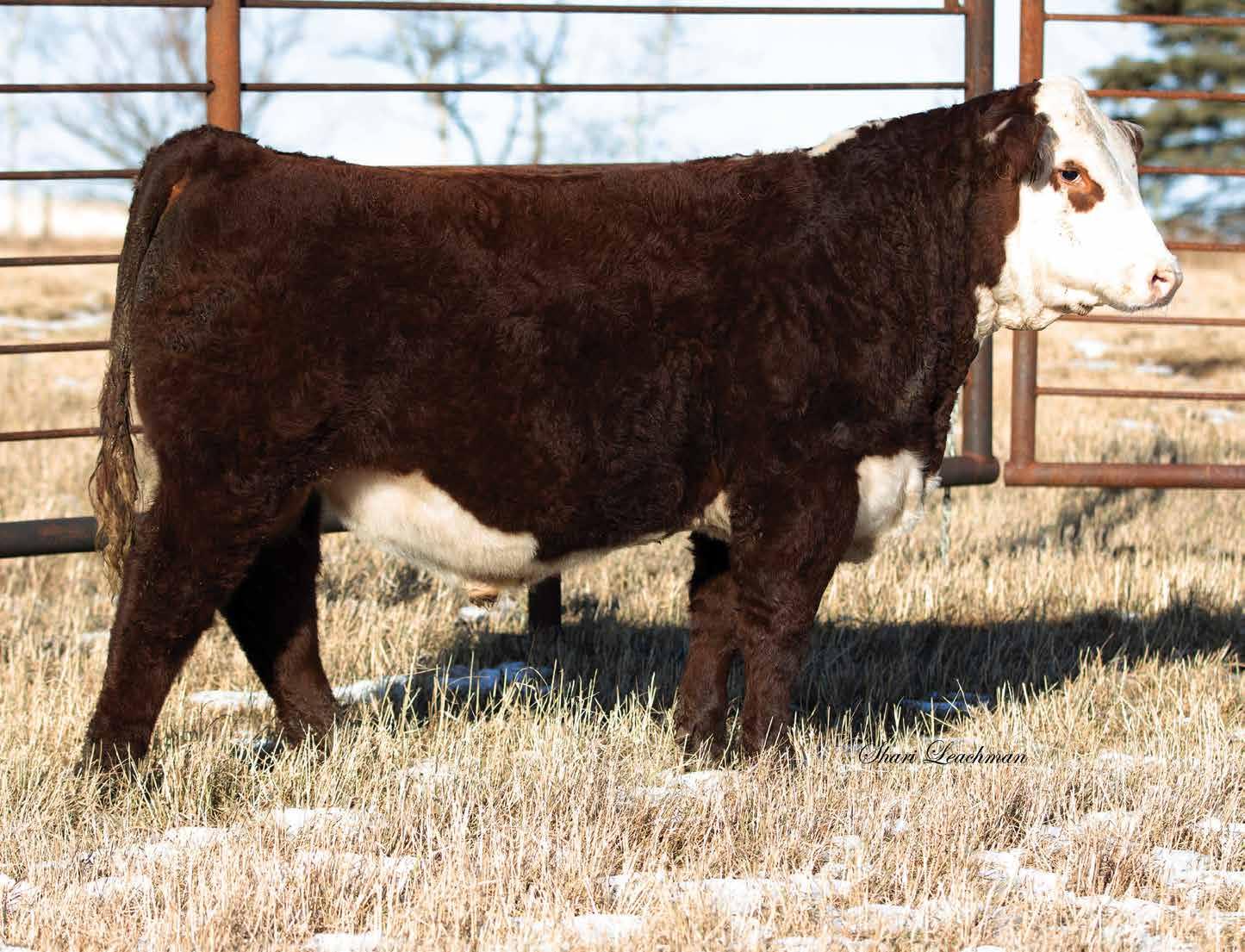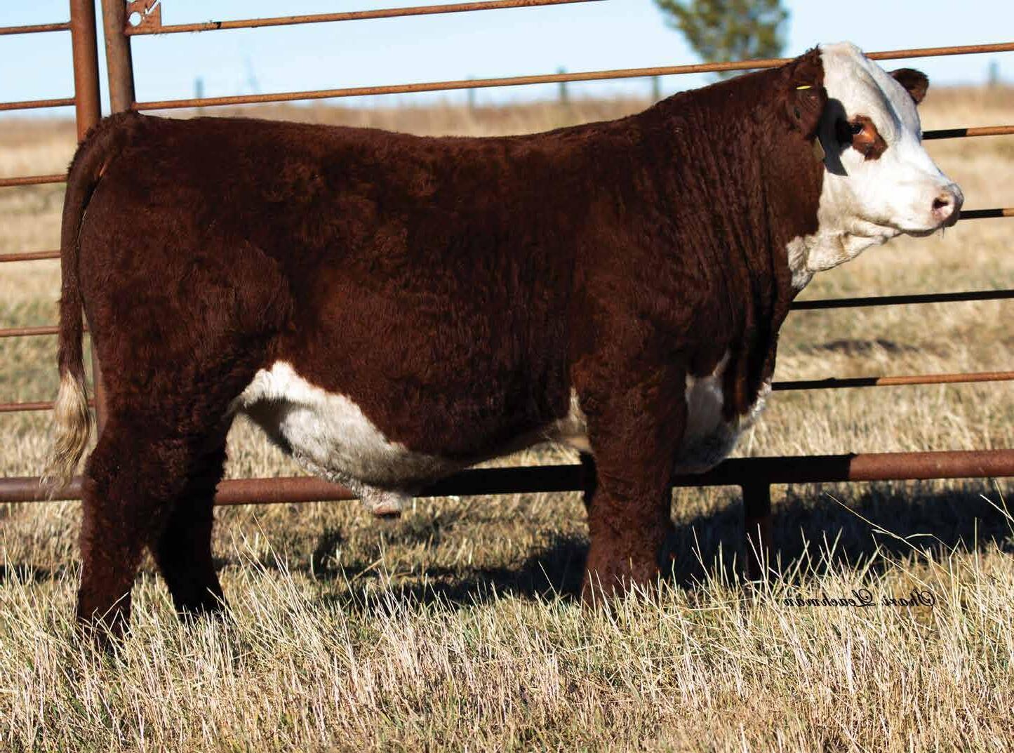 BASELINE has strong body volume and is dense in his build. Specifically, he is bold and deep in his rib cage with extra dimension to his top and hip. He is ideally marked, attractively designed from the profile and tracks aggressively on the move. His dam is as hairy, big bodied and powerful a cow as we have in production.