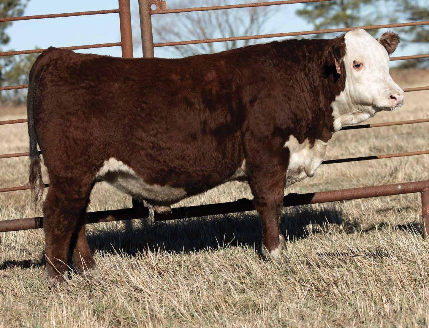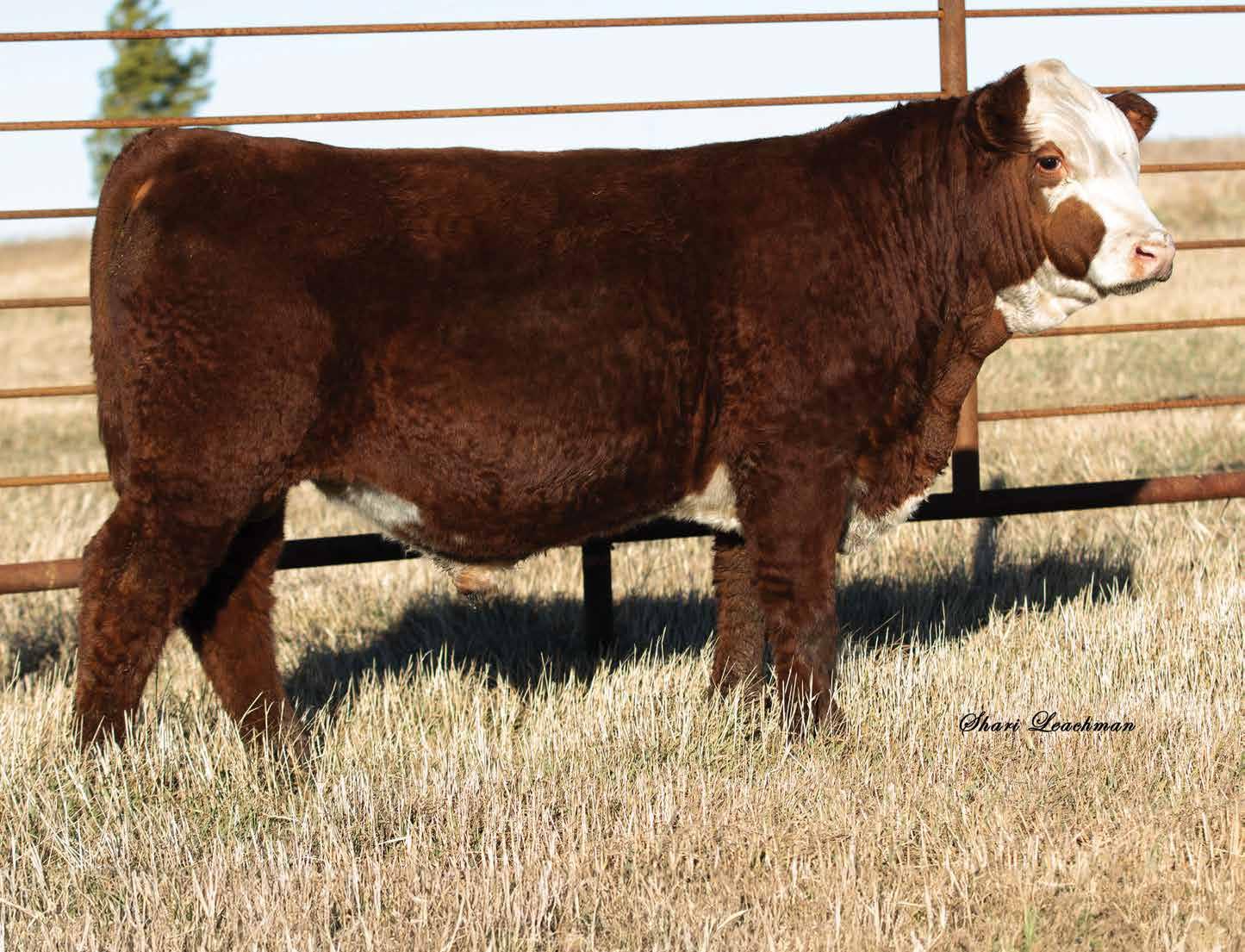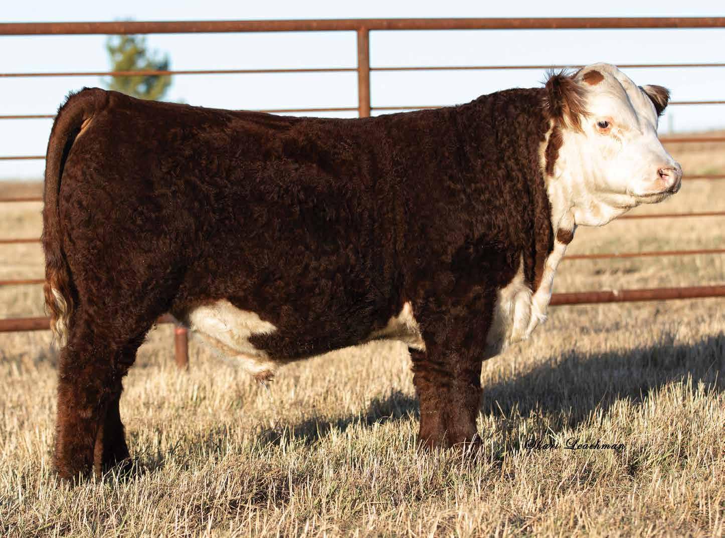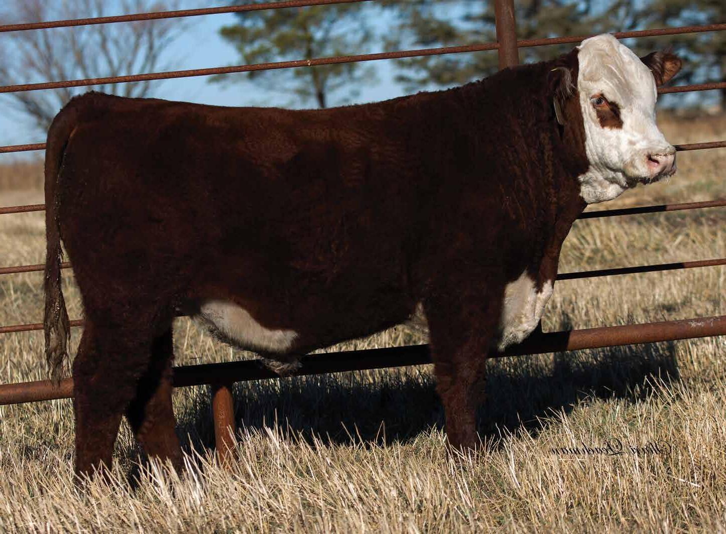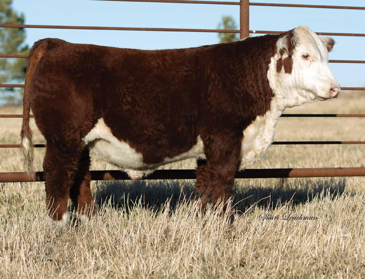 BASELINE has strong body volume and is dense in his build. Specifically, he is bold and deep in his rib cage with extra dimension to his top and hip. He is ideally marked, attractively designed from the profile and tracks aggressively on the move. His dam is as hairy, big bodied and powerful a cow as we have in production.