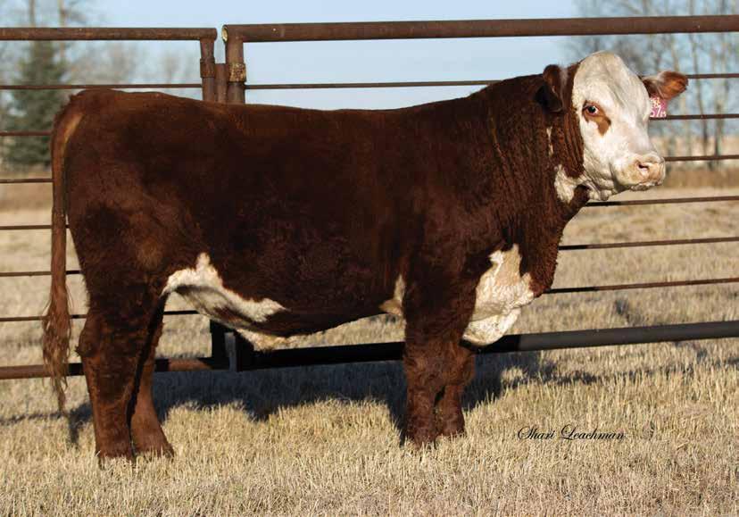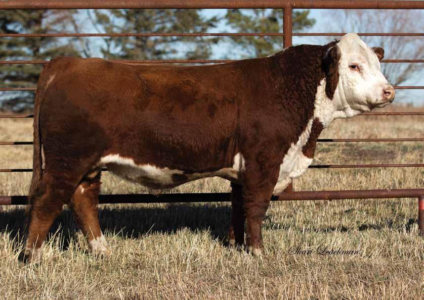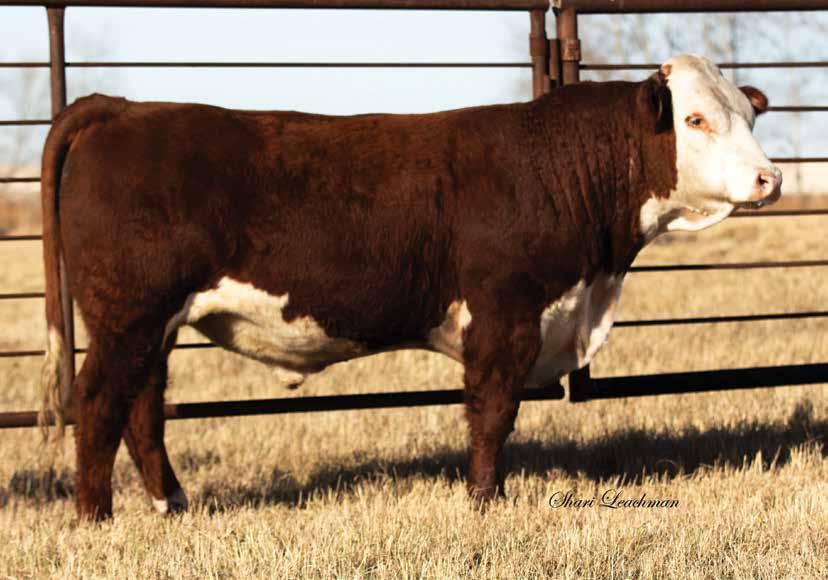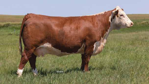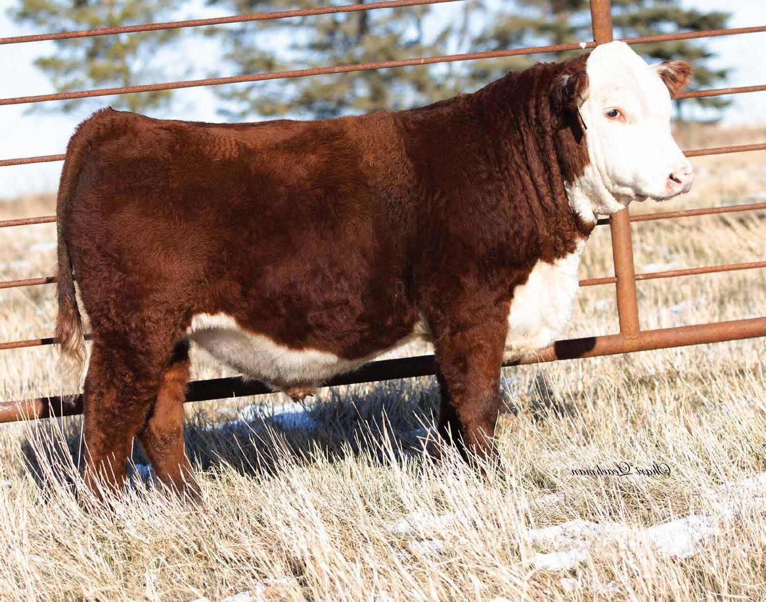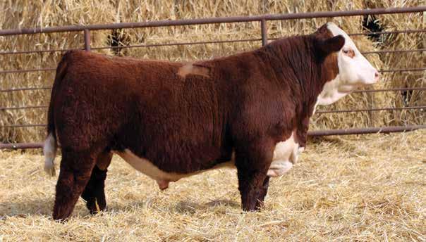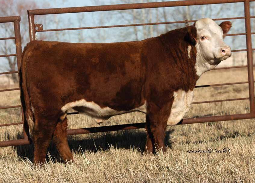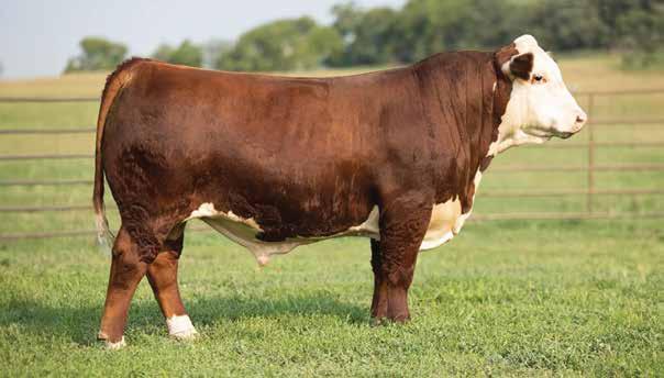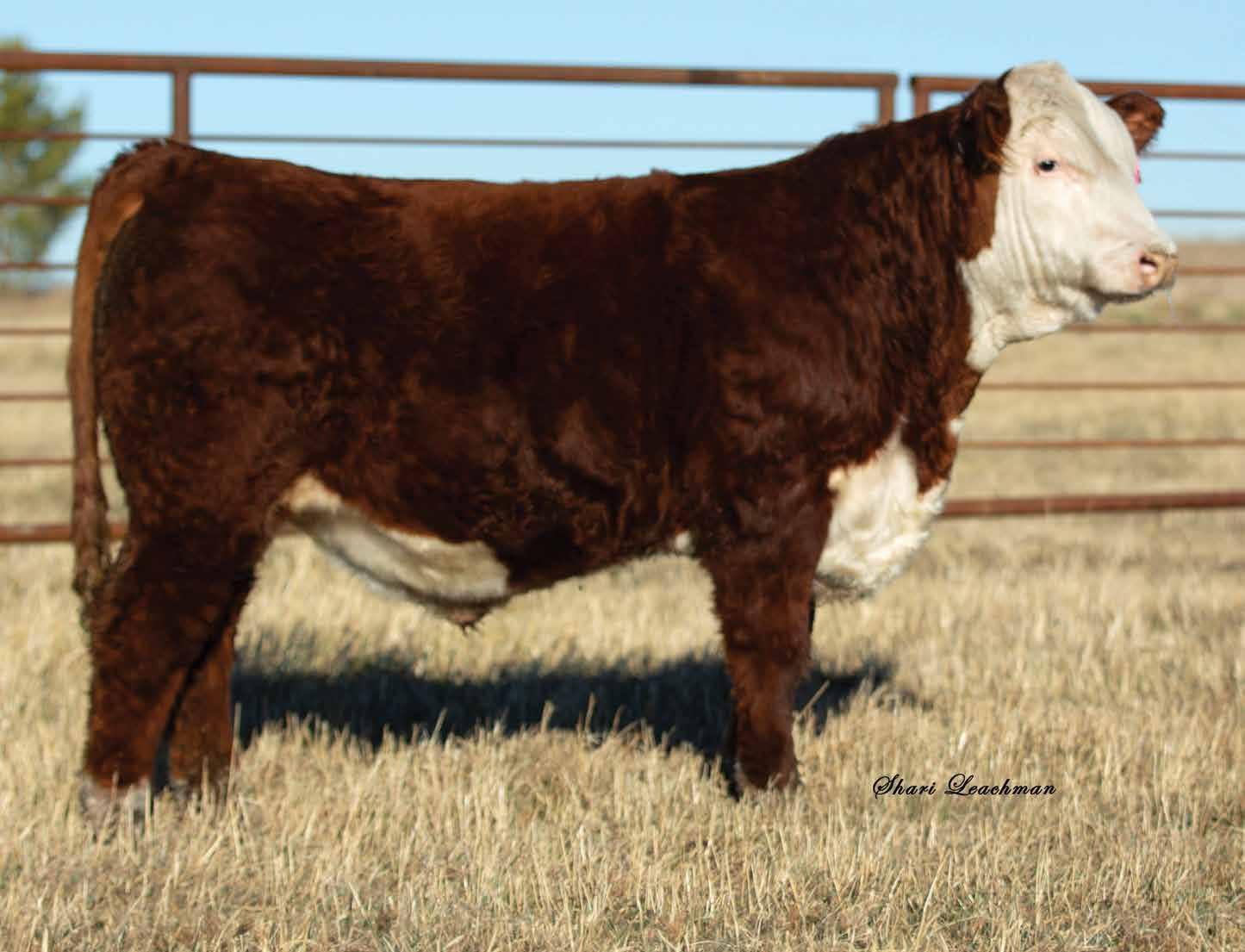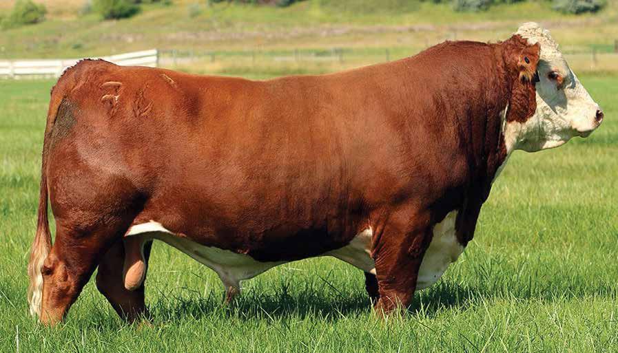 BASELINE has strong body volume and is dense in his build. Specifically, he is bold and deep in his rib cage with extra dimension to his top and hip. He is ideally marked, attractively designed from the profile and tracks aggressively on the move. His dam is as hairy, big bodied and powerful a cow as we have in production.