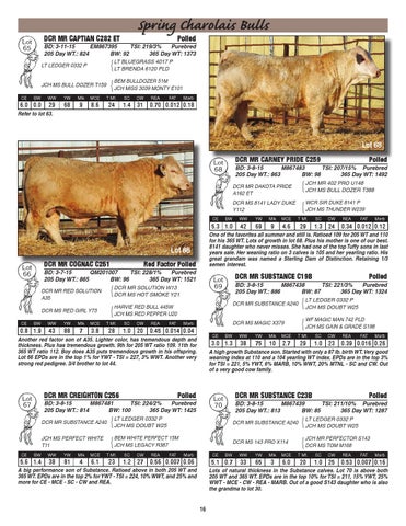Lots of natural thickness in the Substance calves. Lot 70 is above both 205 WT and 365 WT. EPDs are in the top 10% for TSI = 211, 15% YWT, 25% WWT - MCE - CW - REA - MARB. Out of a good S143 daughter who is also the grandma to lot 30.
