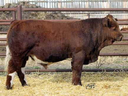 Long, complete, moderate framed and a good mover all describe MAVV Nester 214N well. This Big Energy son is well rounded to produce the kind of calves we all strive to have a pen full of come fall. He may be one of the younger bulls in the pen but he stands right along his older brothers. His dam was purchased from Labatte Simmentals as a bred heifer and I think she has a very bright future here, watch for big things.