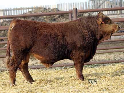 This half blood bull that is sired by the infamous Brooks 669D is pretty cool. MAVV Newton is smaller framed with a really nice smooth head and shoulders. He’s got good feet and a good middle to him making him the full package. His Dam is Red Blairs Miss 518D, one of the origianal purebred Red Angus cows we bought a number of years back, striving to make some ½ blood animals. He definatly carries some great calving ease backed with some simmental power behind him.