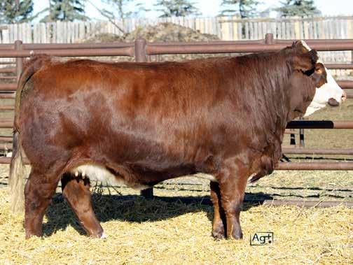 This Big Energy son NYX is deep bodied and deep red with good hair. He is thick made yet soft sided and packing nice muscle. A bull that I feel you need to see up close and personal to really admire all of his characteristics. I really like the soft make of this bull and I feel he can be a fit in anyones herd.